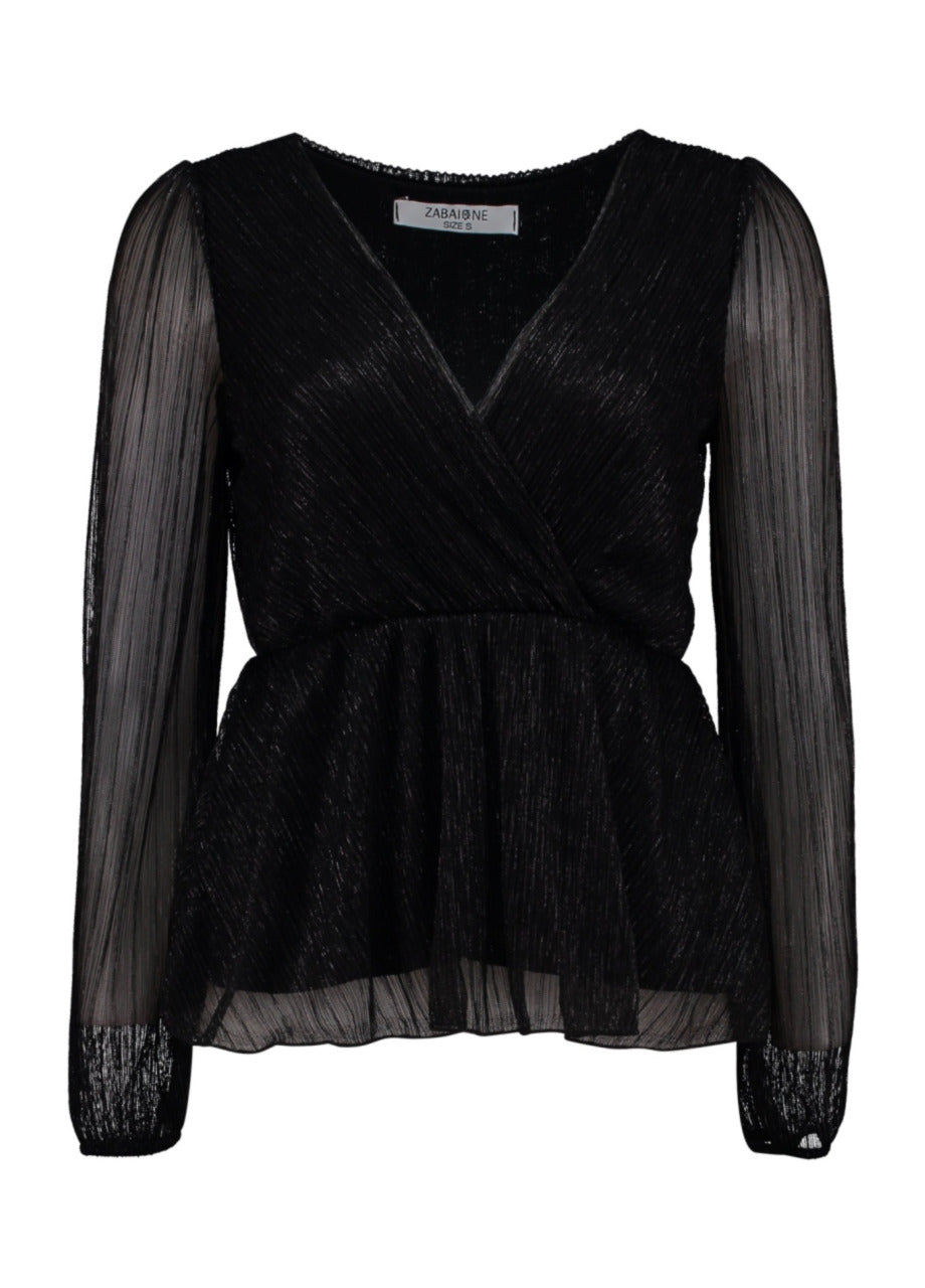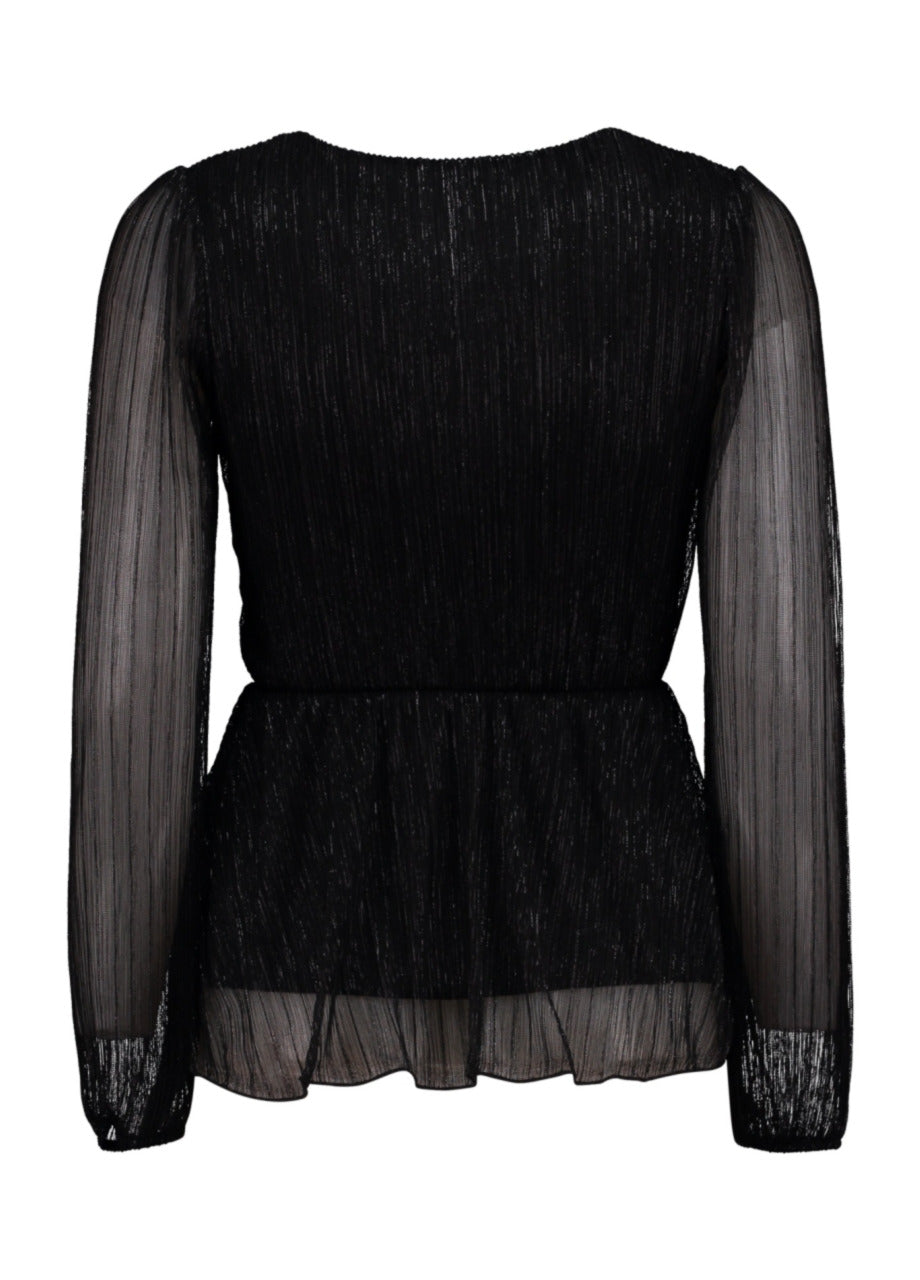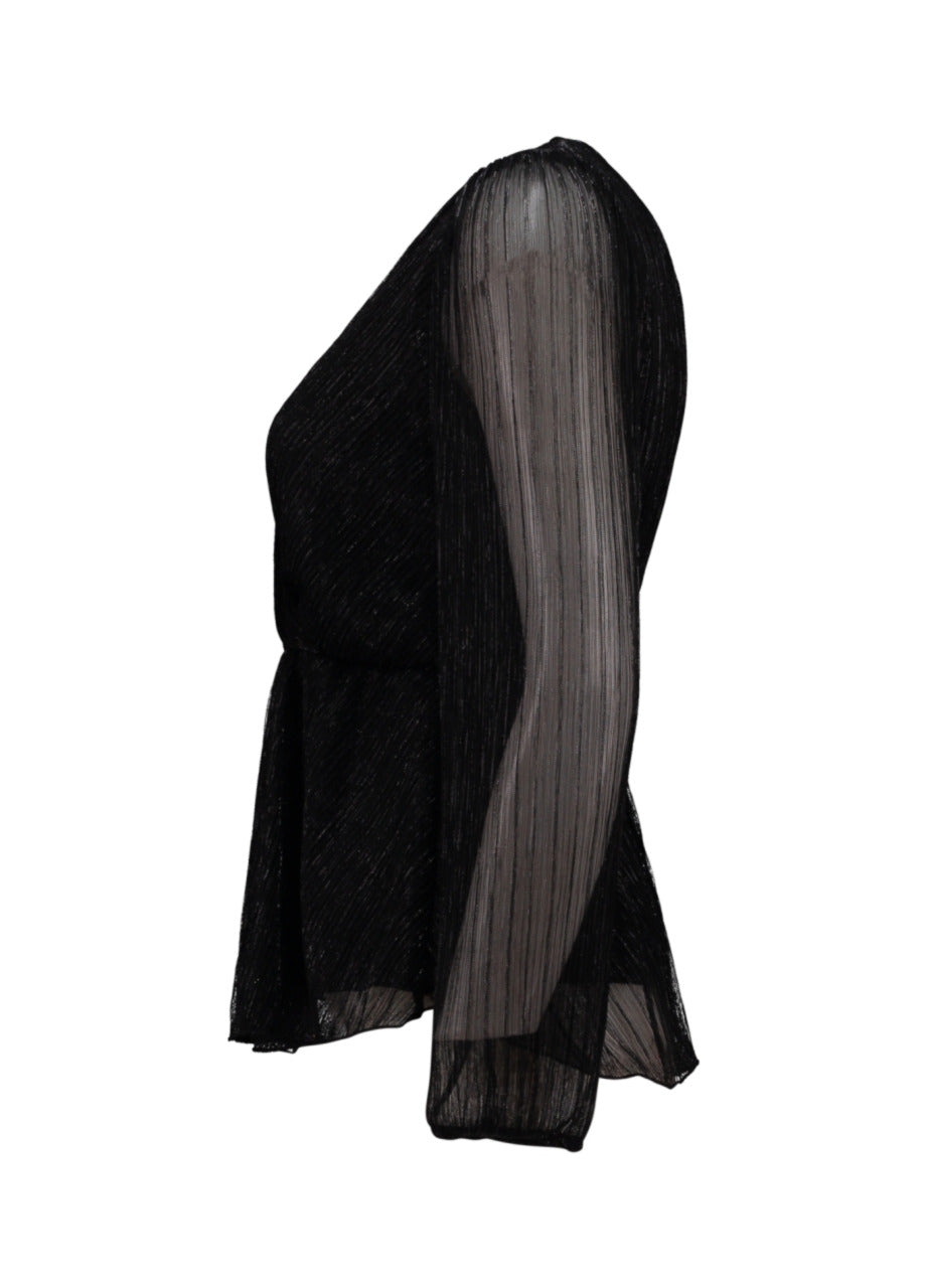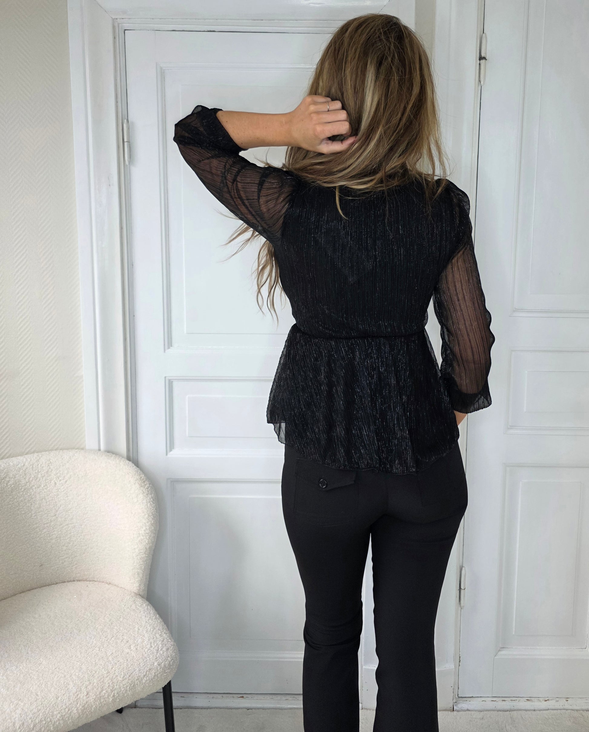 Blus Freyaa - svart med glitter, dubbeltyg och stretchig resår.