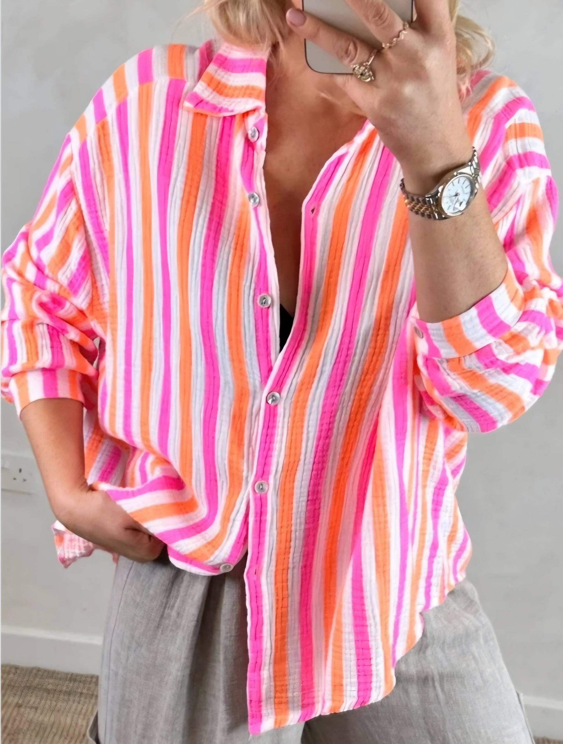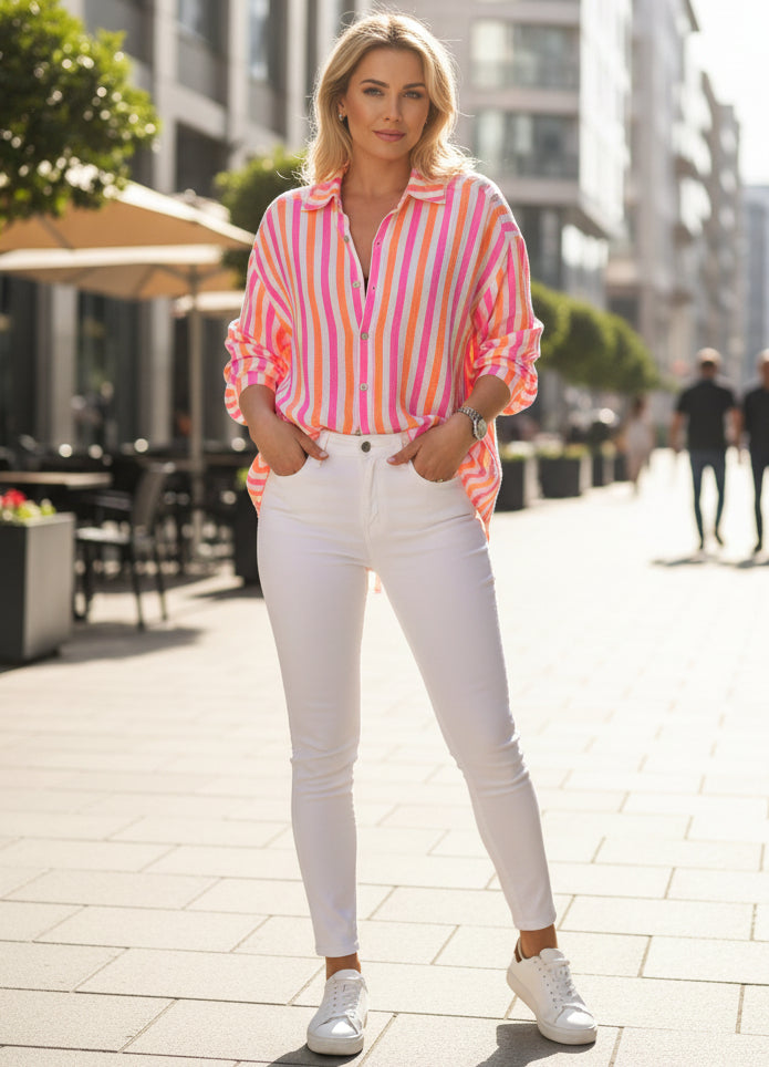 Bomulls skjorta randig Rosa