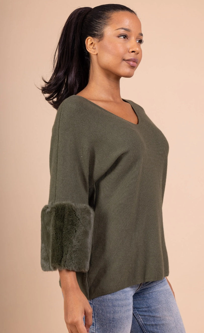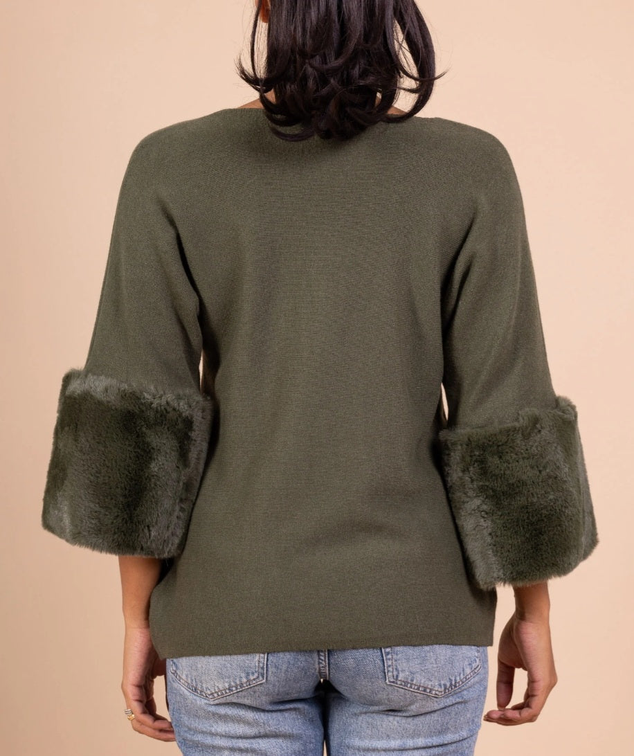Elegant Dorian-tröja med pälsärmar, perfekt för hösten. mjuk blandning av viskos, polyester och nylon.