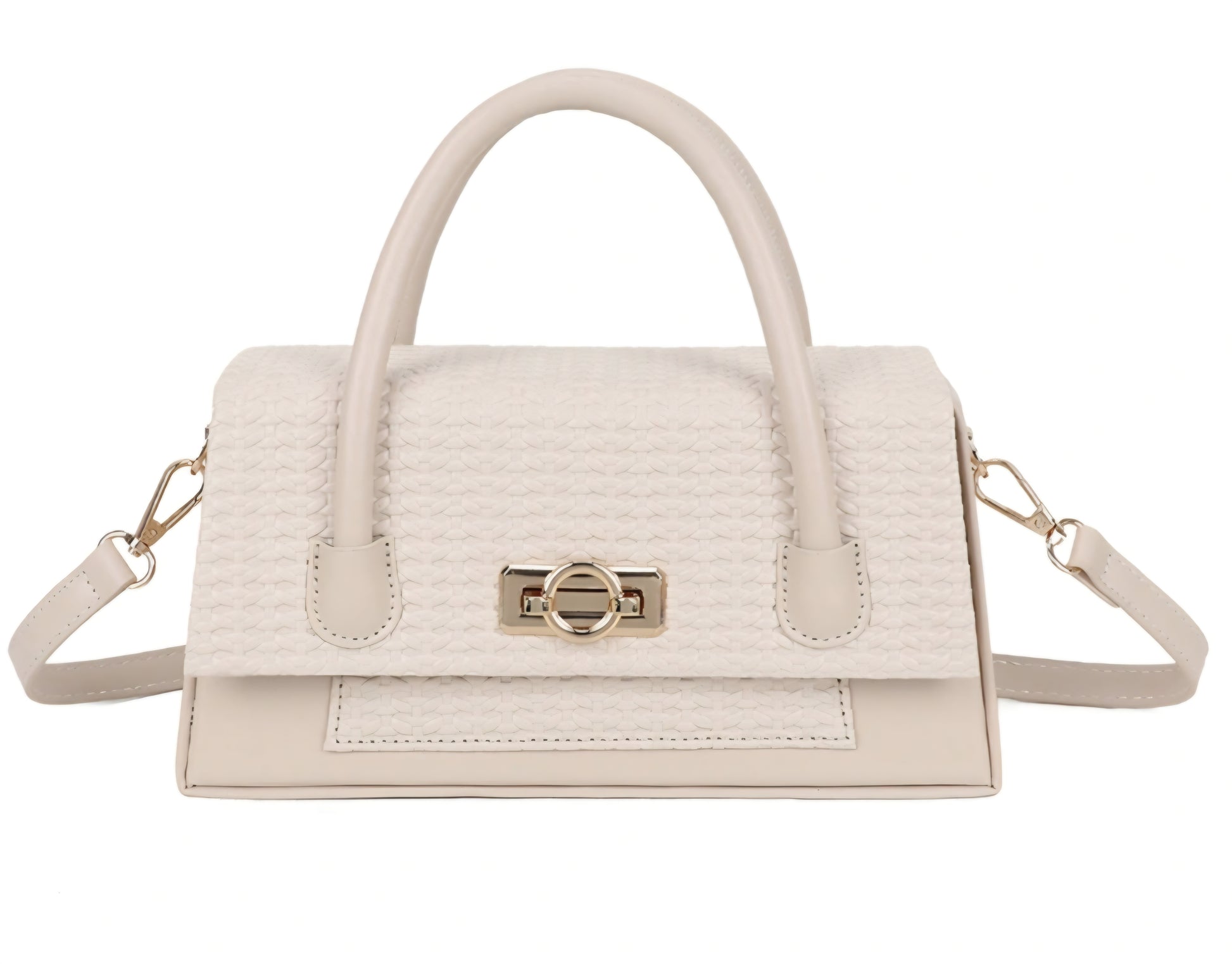 Denna handväska i syntetmaterial med strukturerad design kombinerar tidlös elegans med modernitet och är det perfekta plagget för att förbättra dina kläder, både dag och kväll. Dess delikata vävda effekt och noggranna finish ger den en elegant och sofistikerad stil, perfekt för en feminin och raffinerad look.
