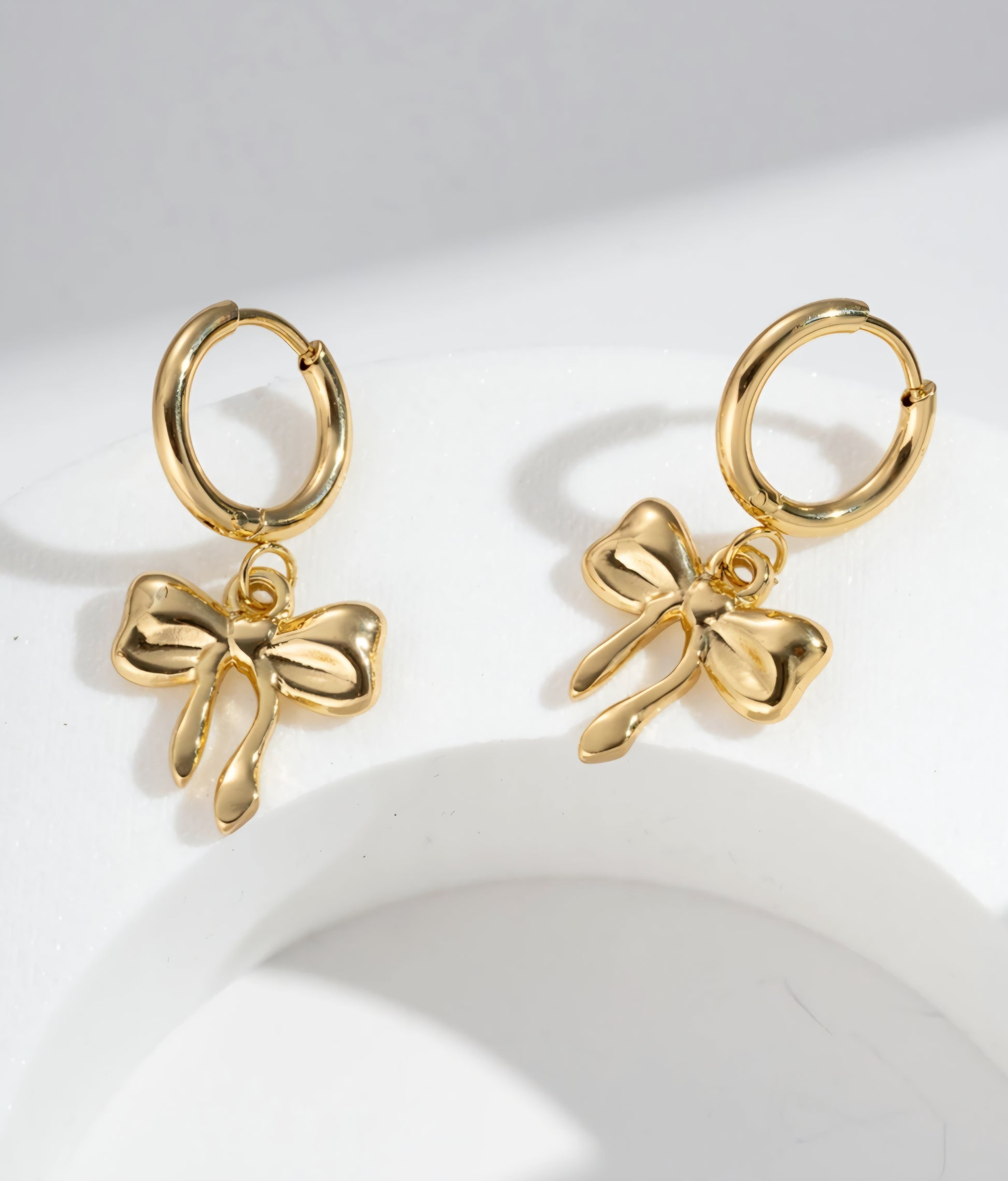 Dessa gyllene örhängen med rosetthängen ger din stil en feminin och delikat touch. Deras strålande glans och raffinerade design gör dem till perfekta smycken för kvinnor, lämpliga för vardagsbruk eller kvällstillfällen. De är ett trendigt accessoar och en perfekt present, och förkroppsligar subtil elegans och romantisk charm.