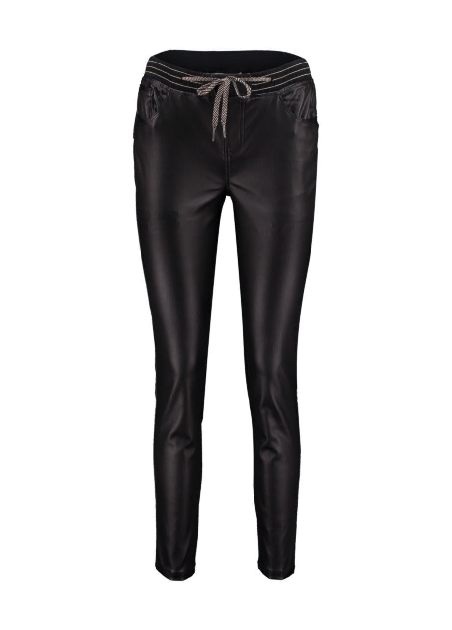 Joanna Byxor - svart i konstläder. Knyt i midjan, Fickor.