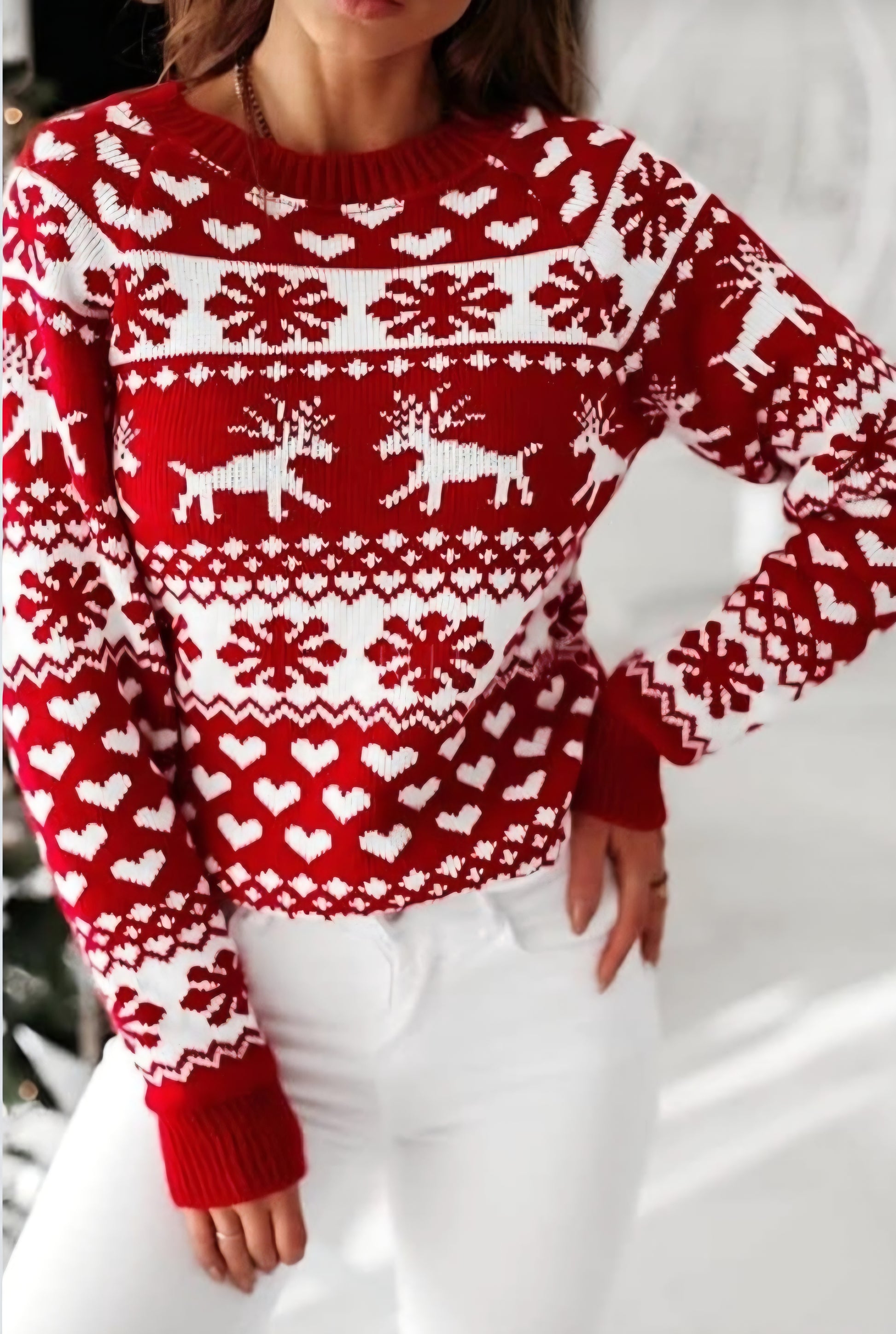 Långärmad jultröja. Stickad topp finns i en storlek som passar alla. Finns i olika färger.