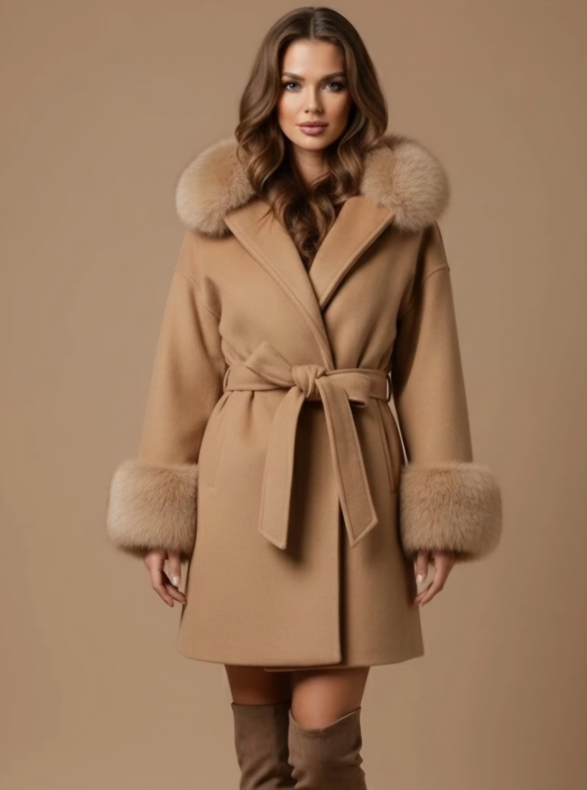 Pälsdetaljerna på huvan och ärmsluten ger en lyxig touch, perfekt för en elegant och feminin look.