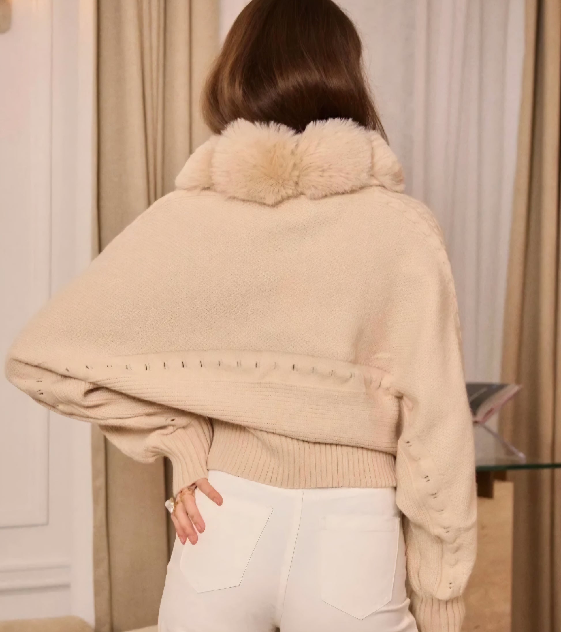 Kofta avtagbar fuskpäls Beige