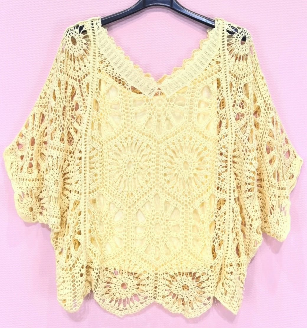 2-delad virkad topp Gul