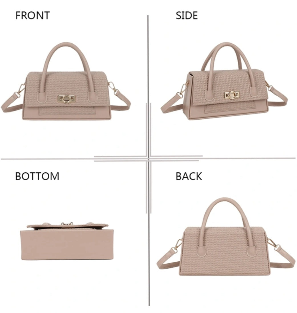 Denna handväska i syntetmaterial med strukturerad design kombinerar tidlös elegans med modernitet och är det perfekta plagget för att förbättra dina kläder, både dag och kväll. Dess delikata vävda effekt och noggranna finish ger den en elegant och sofistikerad stil, perfekt för en feminin och raffinerad look.