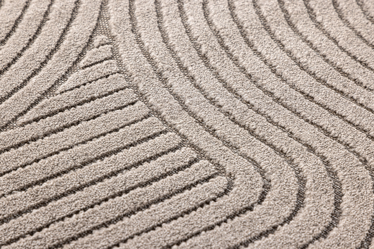 Den här benvita mattan har ett linjerat mönster i den låga luggen som ger liv och rörelse till blickfånget. Den korta luggen möjliggör också enkel skötsel och är helt i linje med trenderna just nu.