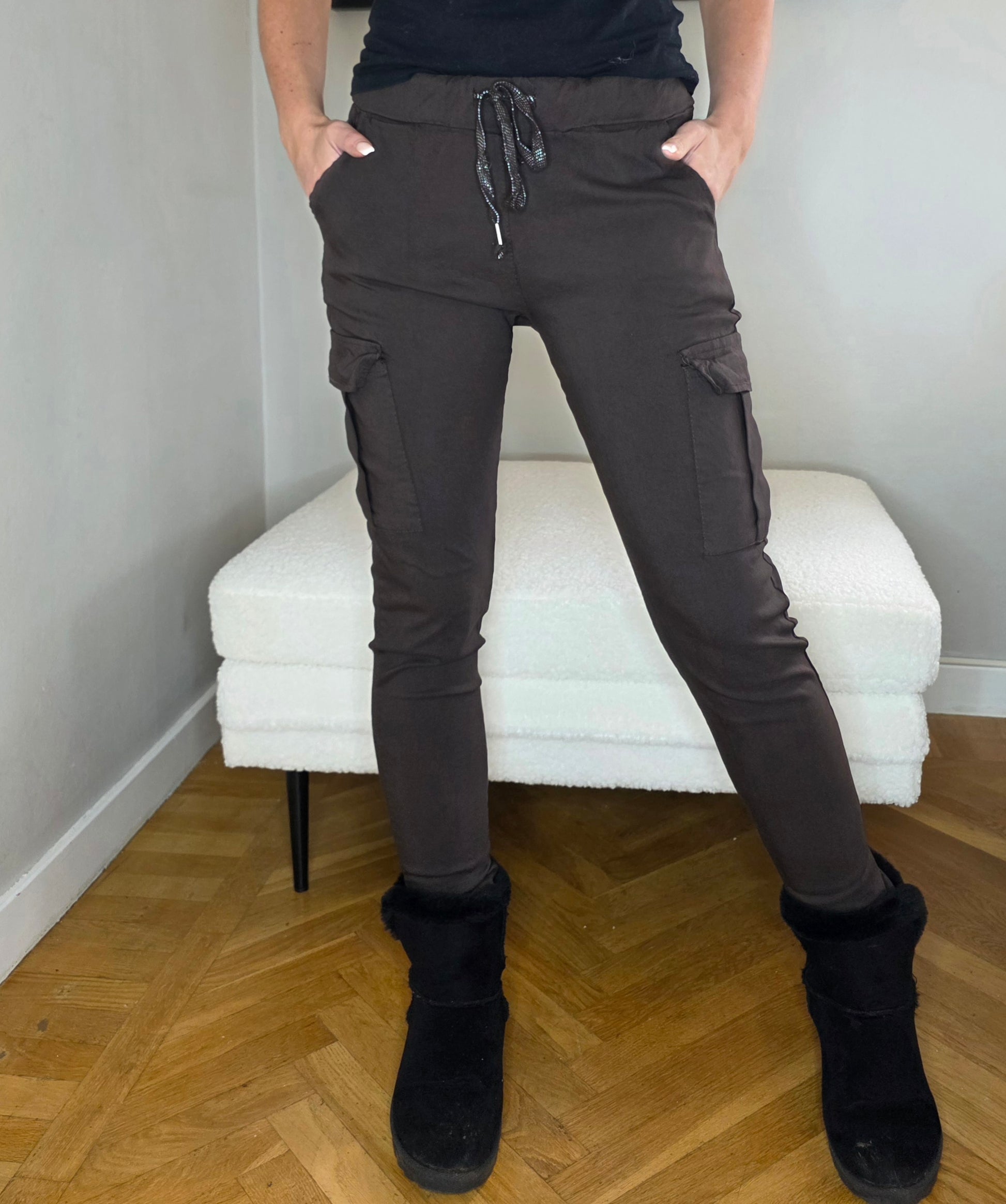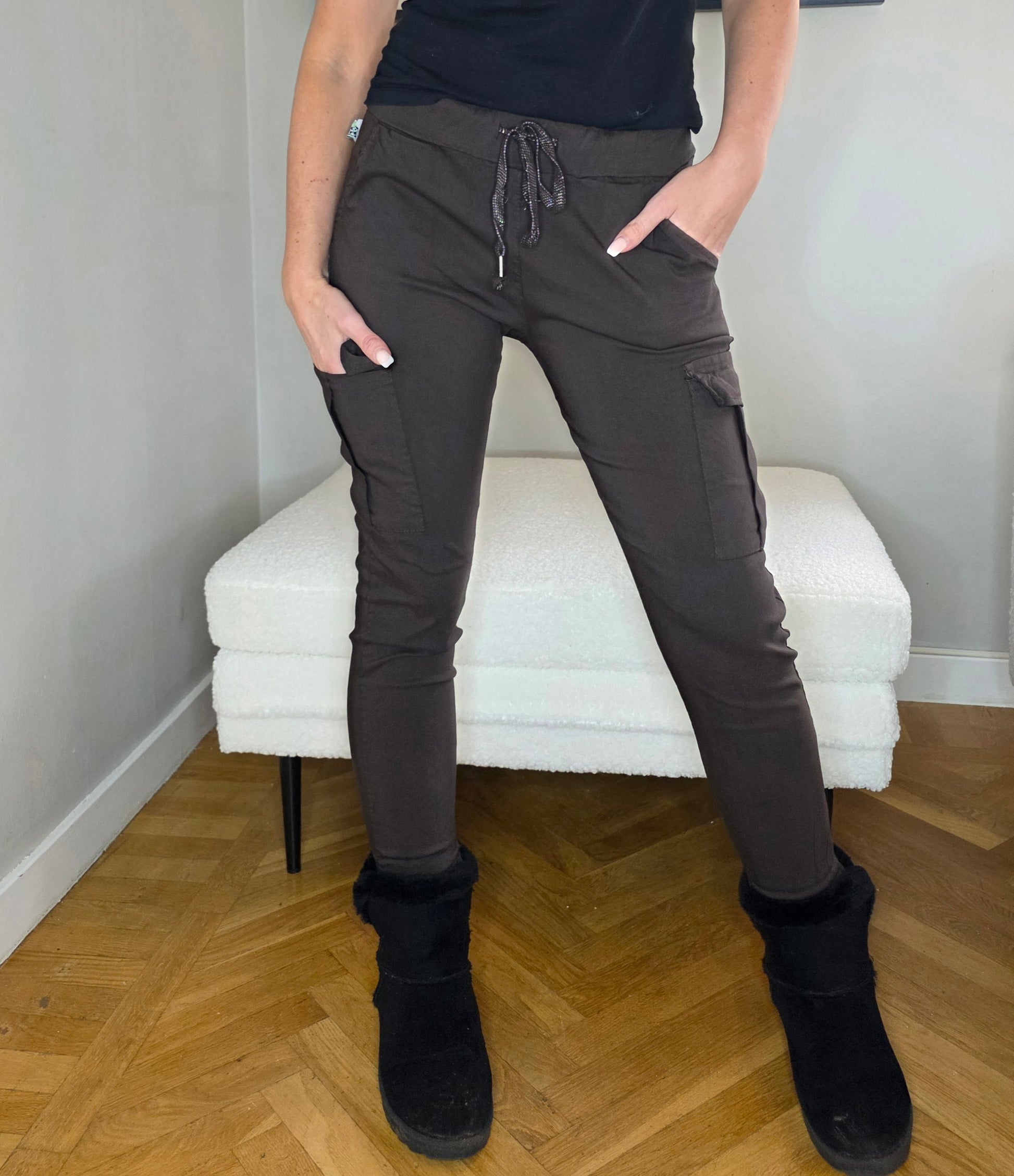 Magic cargo joggingbyxor med sido- och sidofickor.