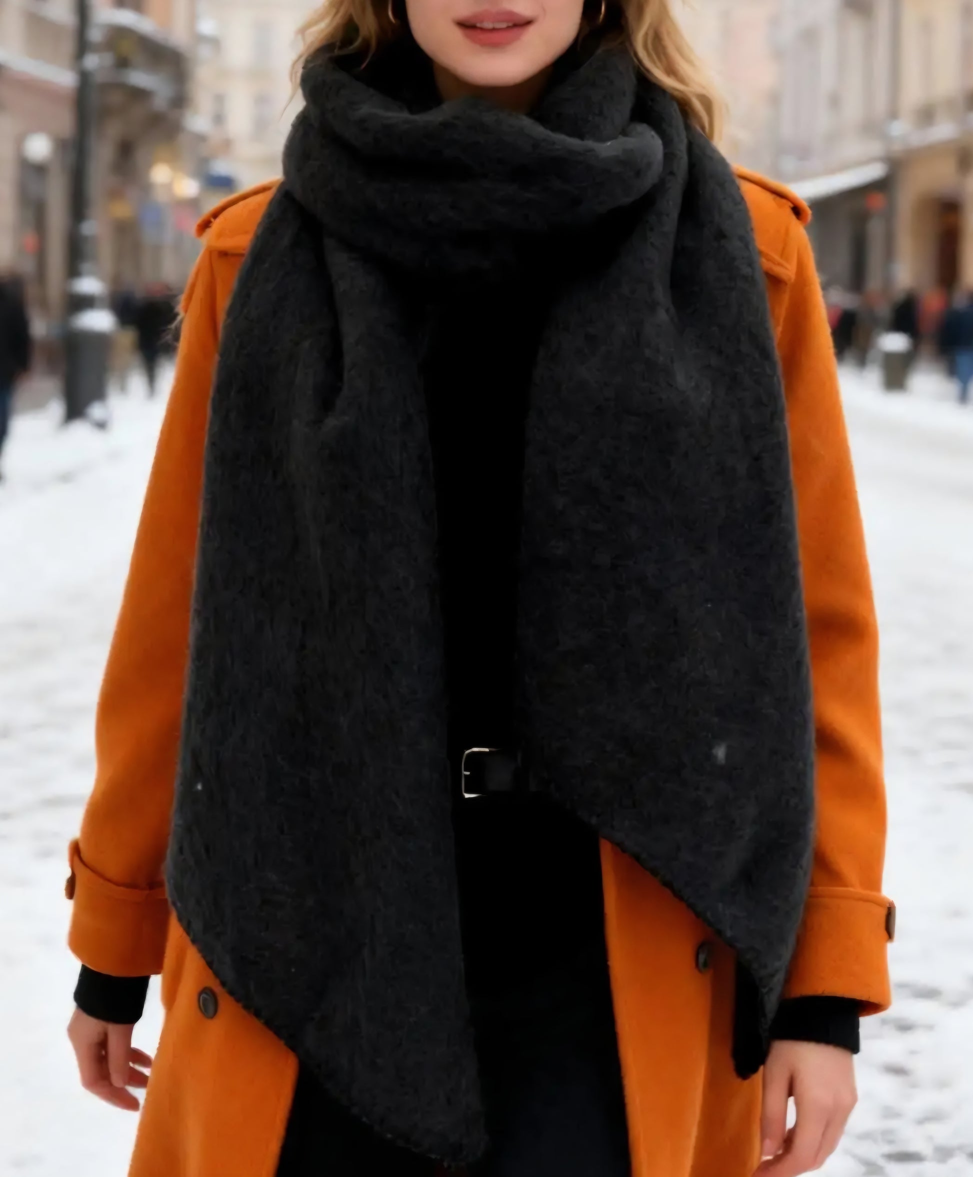 Enfärgad halsduk, mjuk blandning av ull och polyester, perfekt för höst/vinter