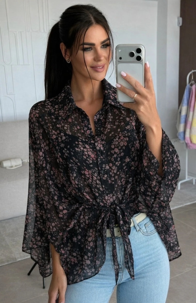 Mönstrad poncho-skjorta med foder Svart