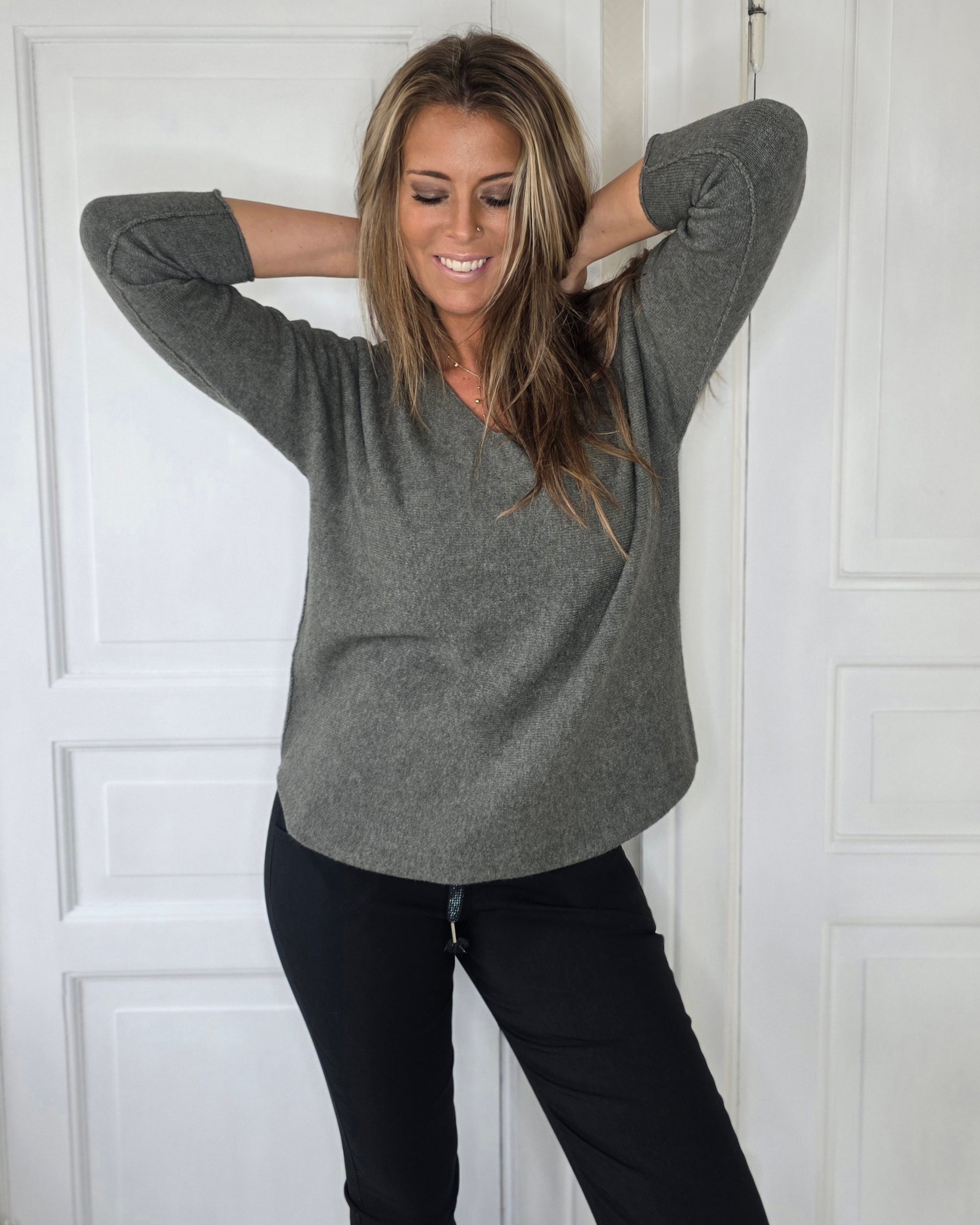 Sömlös stickad tröja av mycket bra kvalitet. Materialet är väldigt likt ull och kashmir.