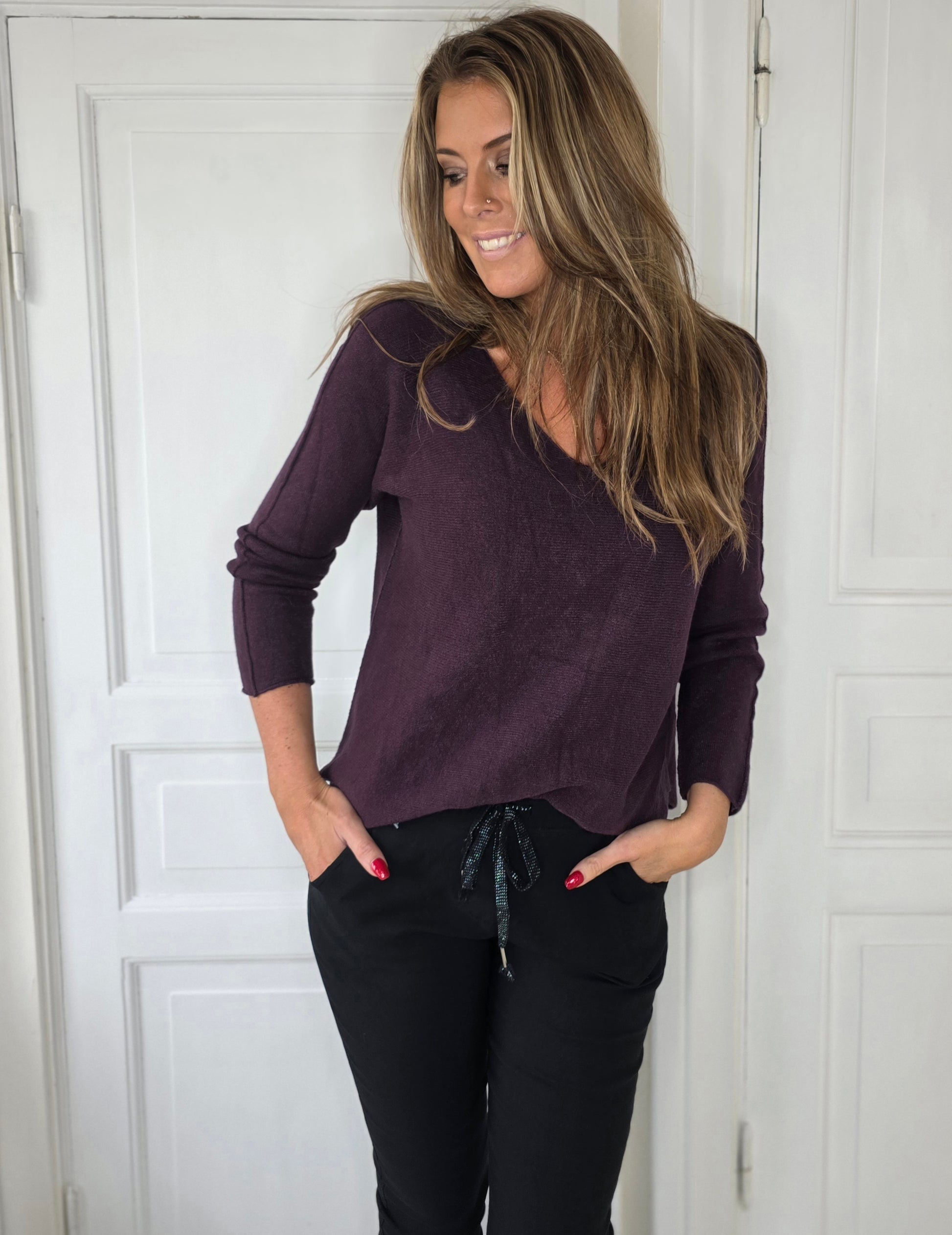 Sömlös stickad tröja plommonlila