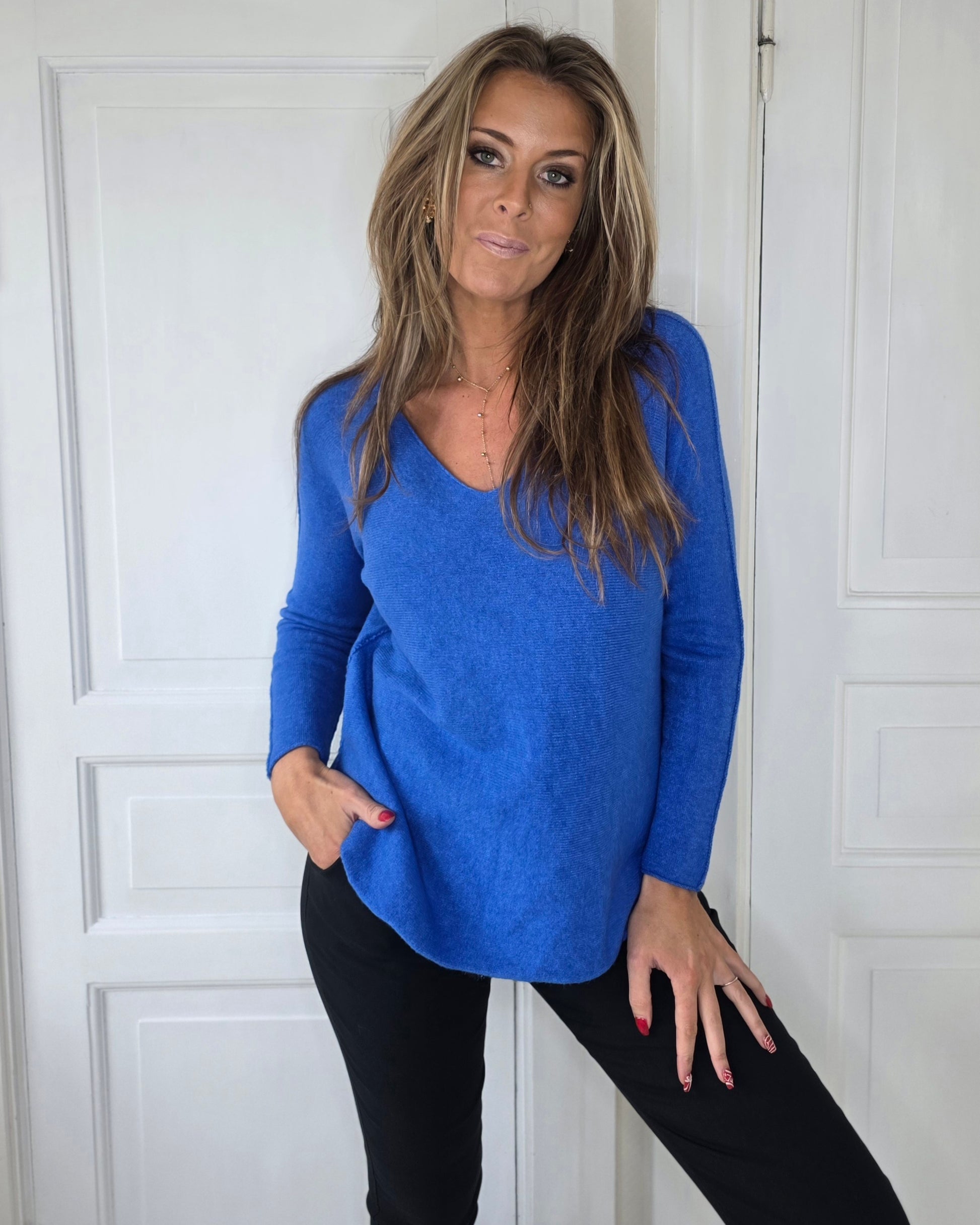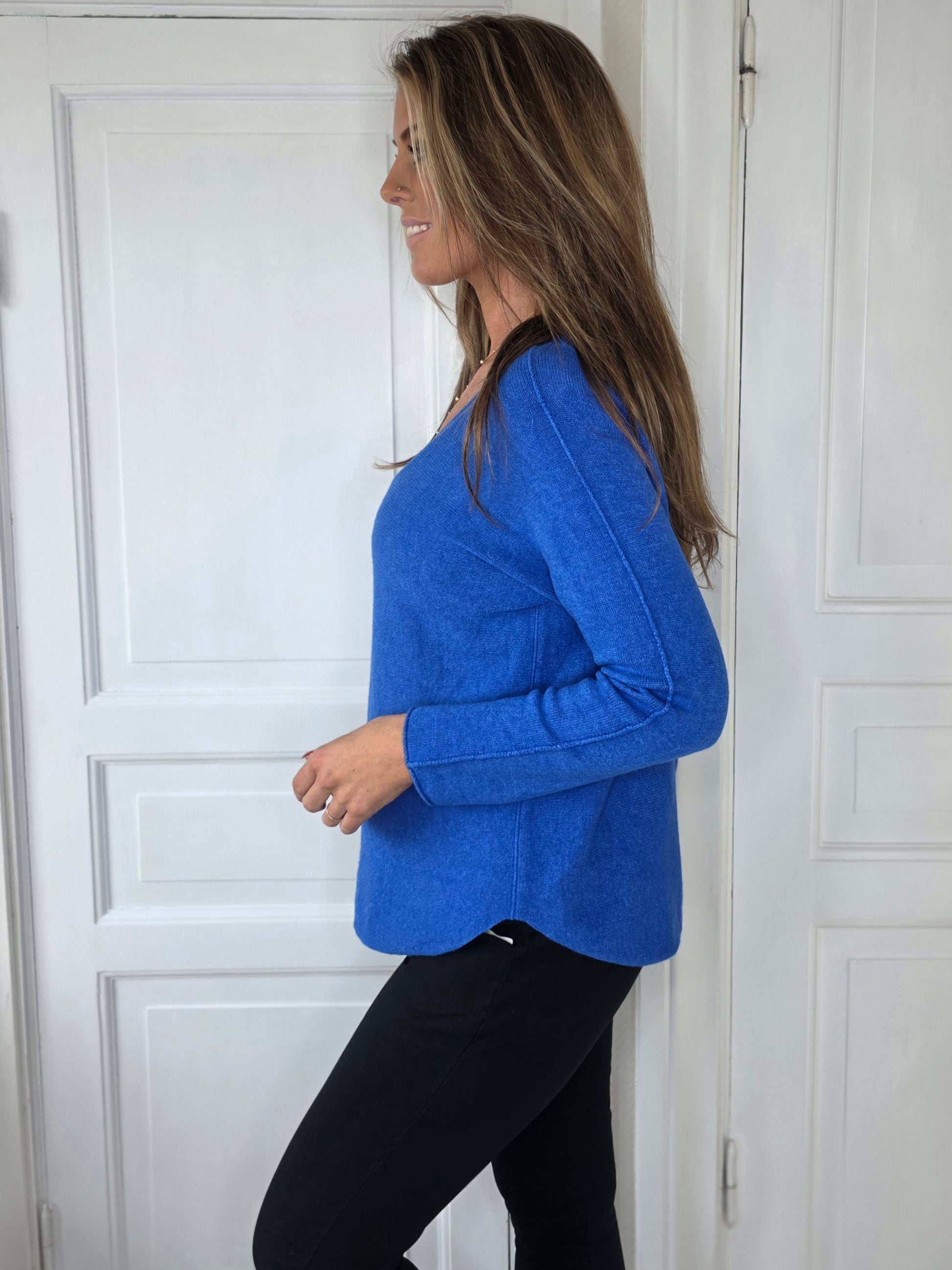 Sömlös stickad tröja Blå