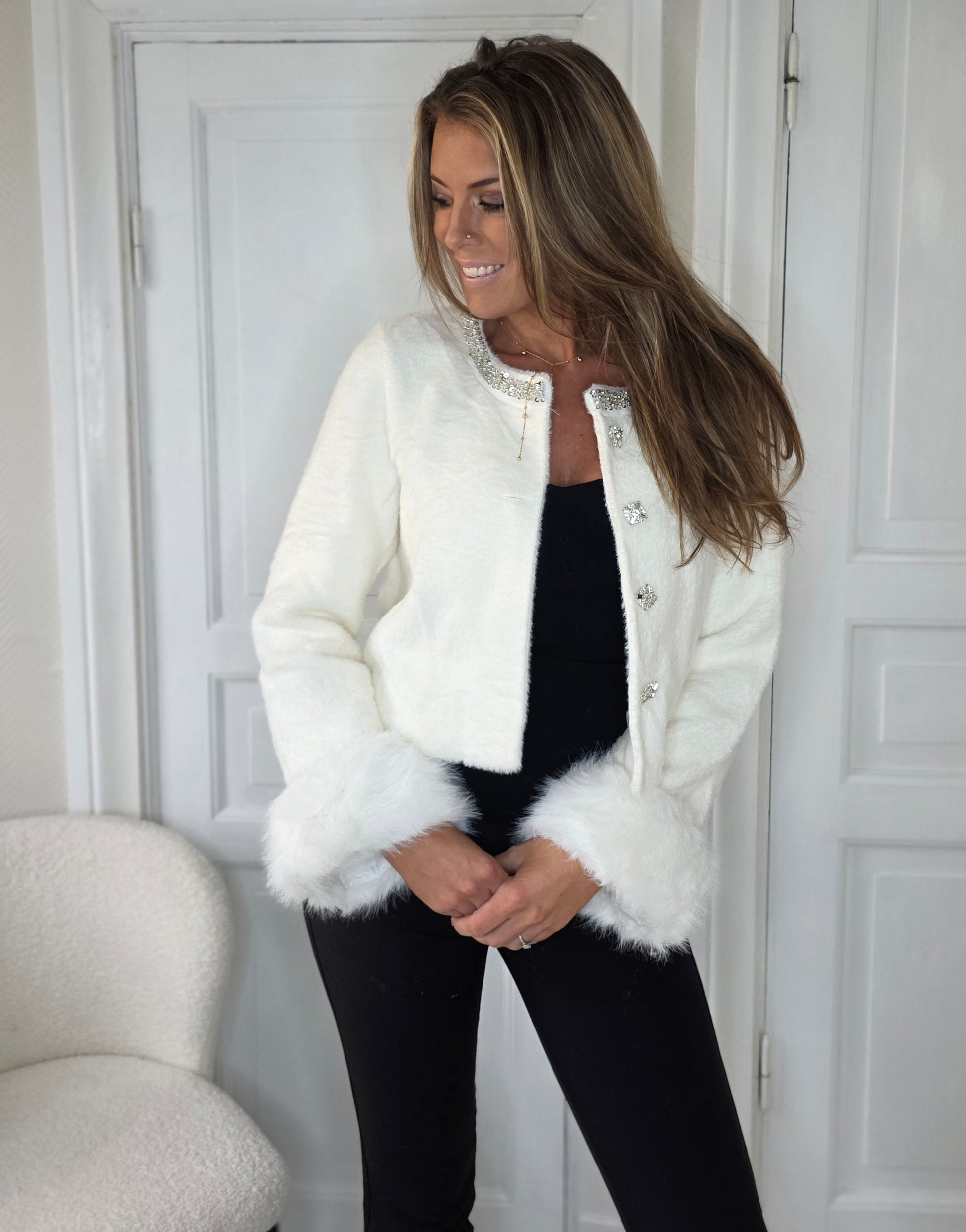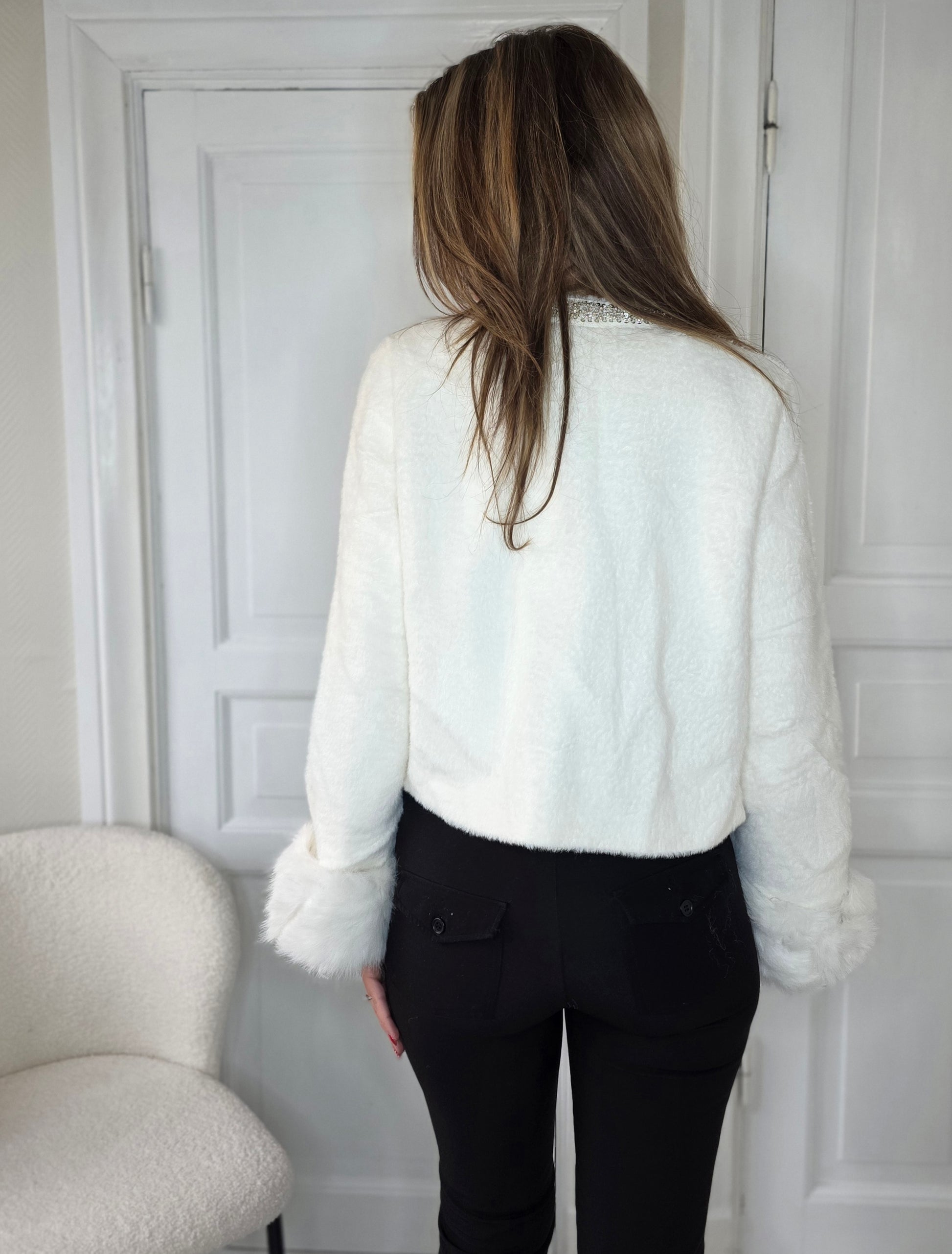 jacka i fuskpäls, nylon och polyester, med en snygg krage, perfekt för en mild vinter