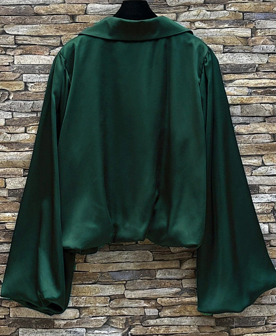 TARA-blus, böljande ärmar Grön