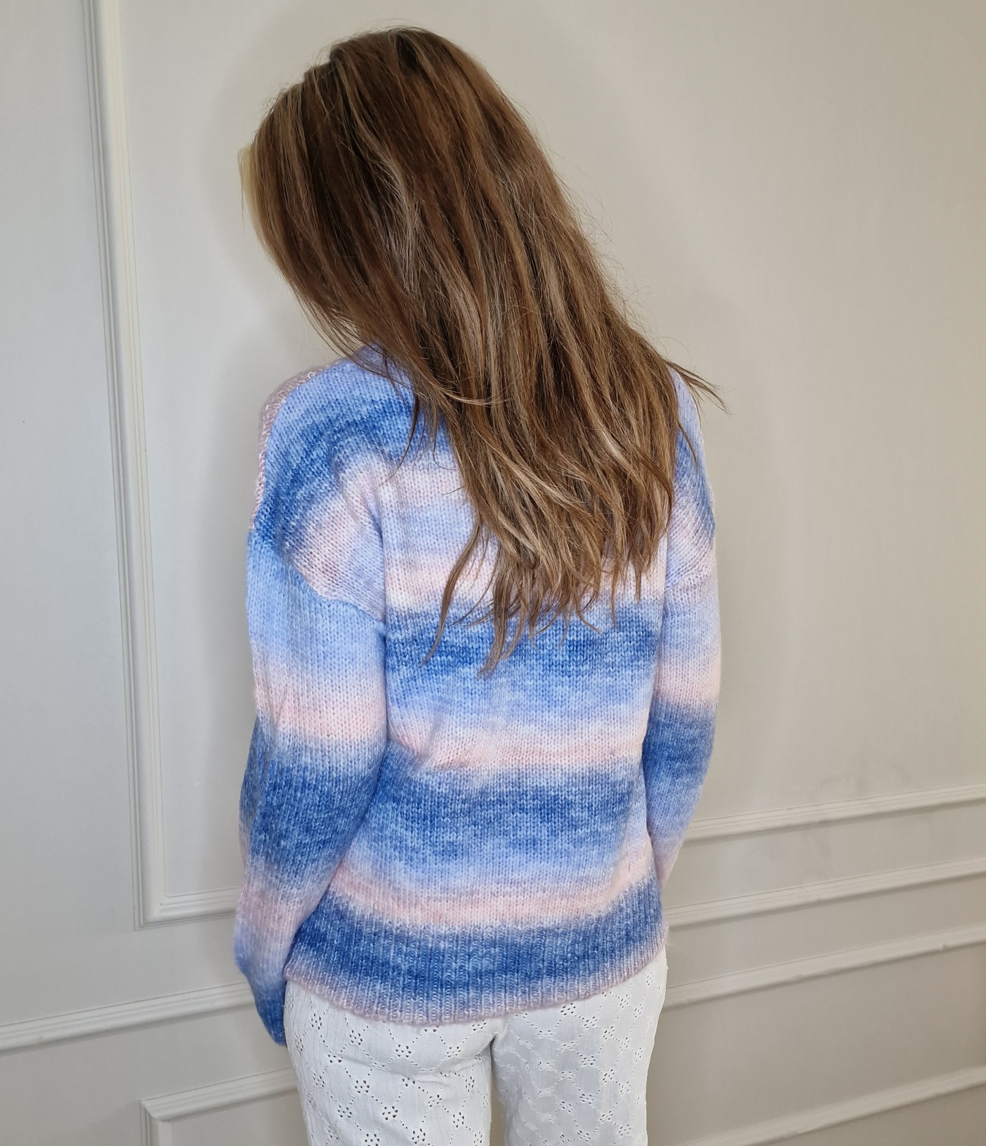 Denna tie-dye-tröja med kabelstickning kombinerar ett traditionellt mönster med en modern färgningsteknik. Tröjan är tillverkad av kabelstickning, som kännetecknas av upphöjda mönster som flätas samman och ger plagget en rik textur och ett tredimensionellt utseende. Tie-dye-designen läggs ovanpå denna textur med färggradienter som smidigt övergår från en nyans till en annan, vilket skapar en unik och konstnärlig effekt. Passformen är avslappnad, med långa ärmar och rund halsringning, vilket erbjuder både komfort och stil. Denna tröja är idealisk för att ge en touch av kreativitet och värme till en avslappnad outfit.
