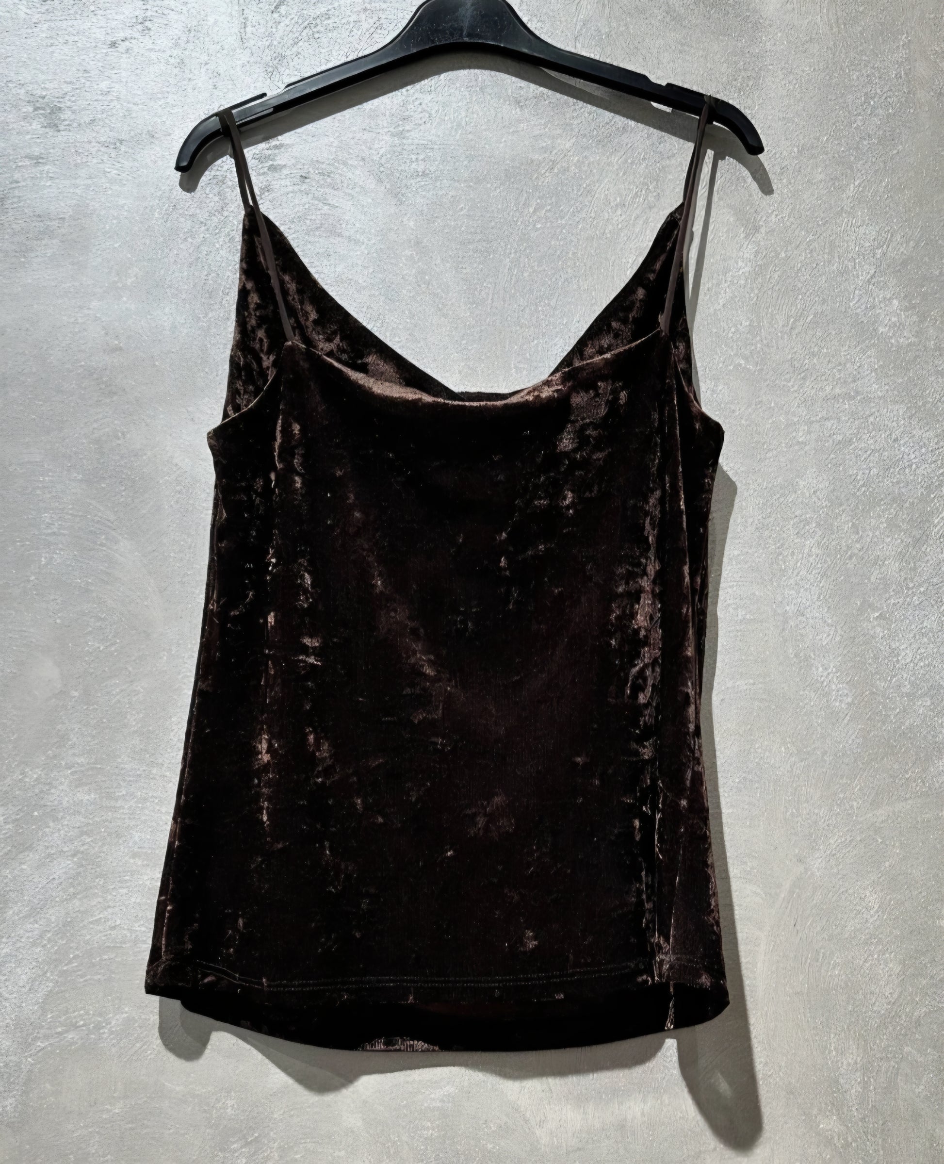 Denna ärmlösa topp i sammetslook i mesh har en elegant V-ringning. Dess lätta och böljande passform gör den perfekt för en elegant och avslappnad stil. Perfekt att bära som lager på lager eller ensam, den passar alla tillfällen. En storlek passar 36-42