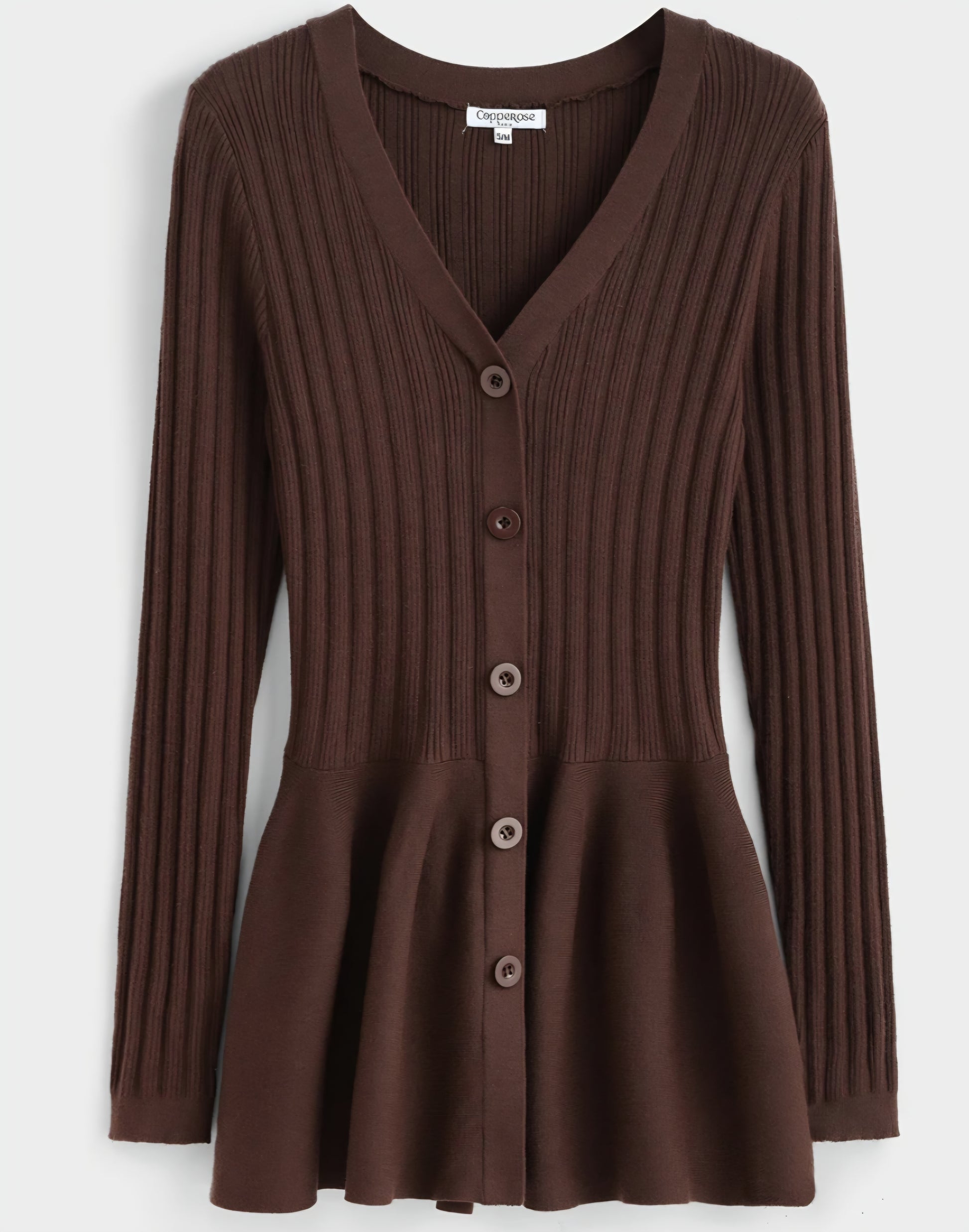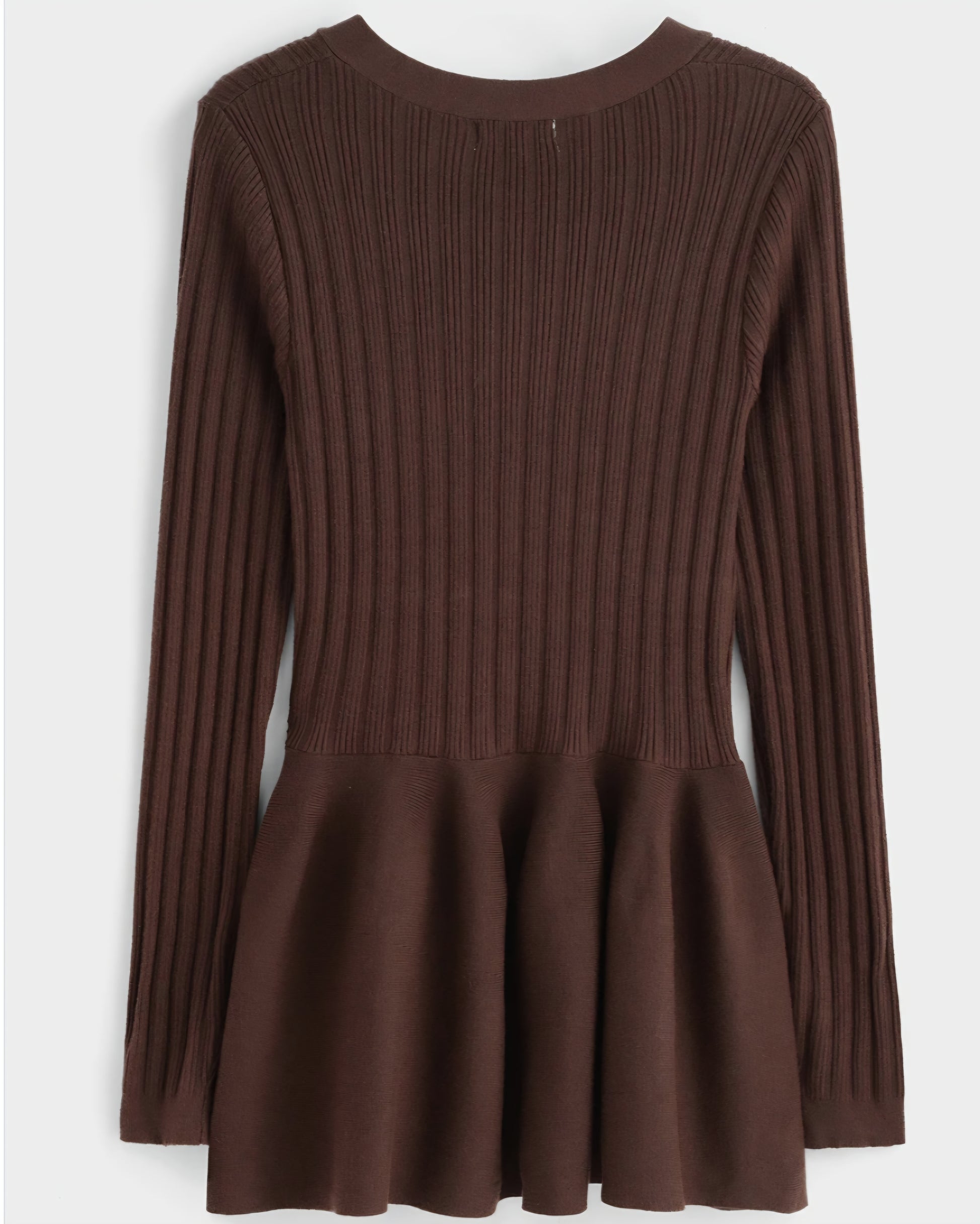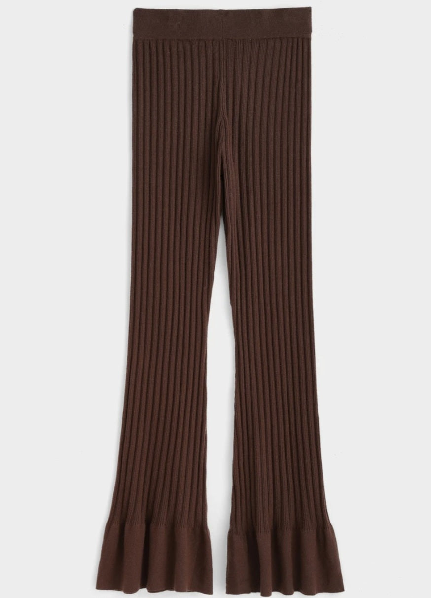 Ribbstickat set med utsvängda byxor och peplumtopp