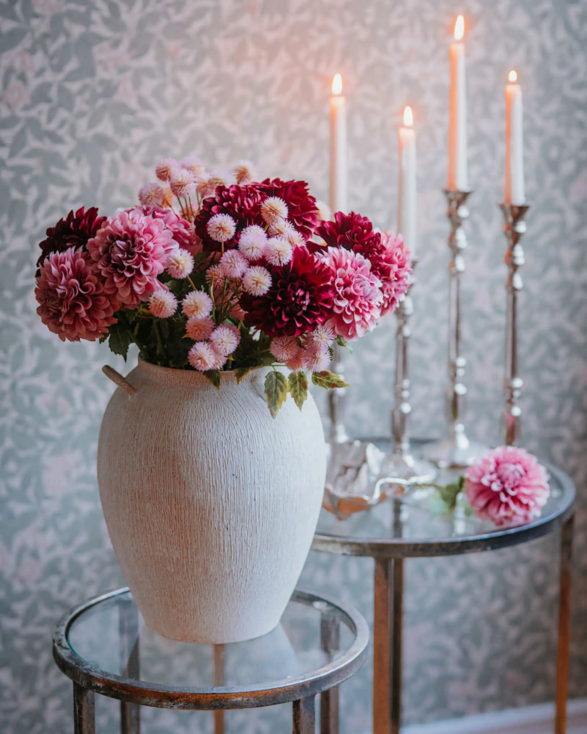 Calliope är en vas som blir en vacker dekoration som den är eller kanske med torkade växter eller snittblommor. Tillverkad i metall.