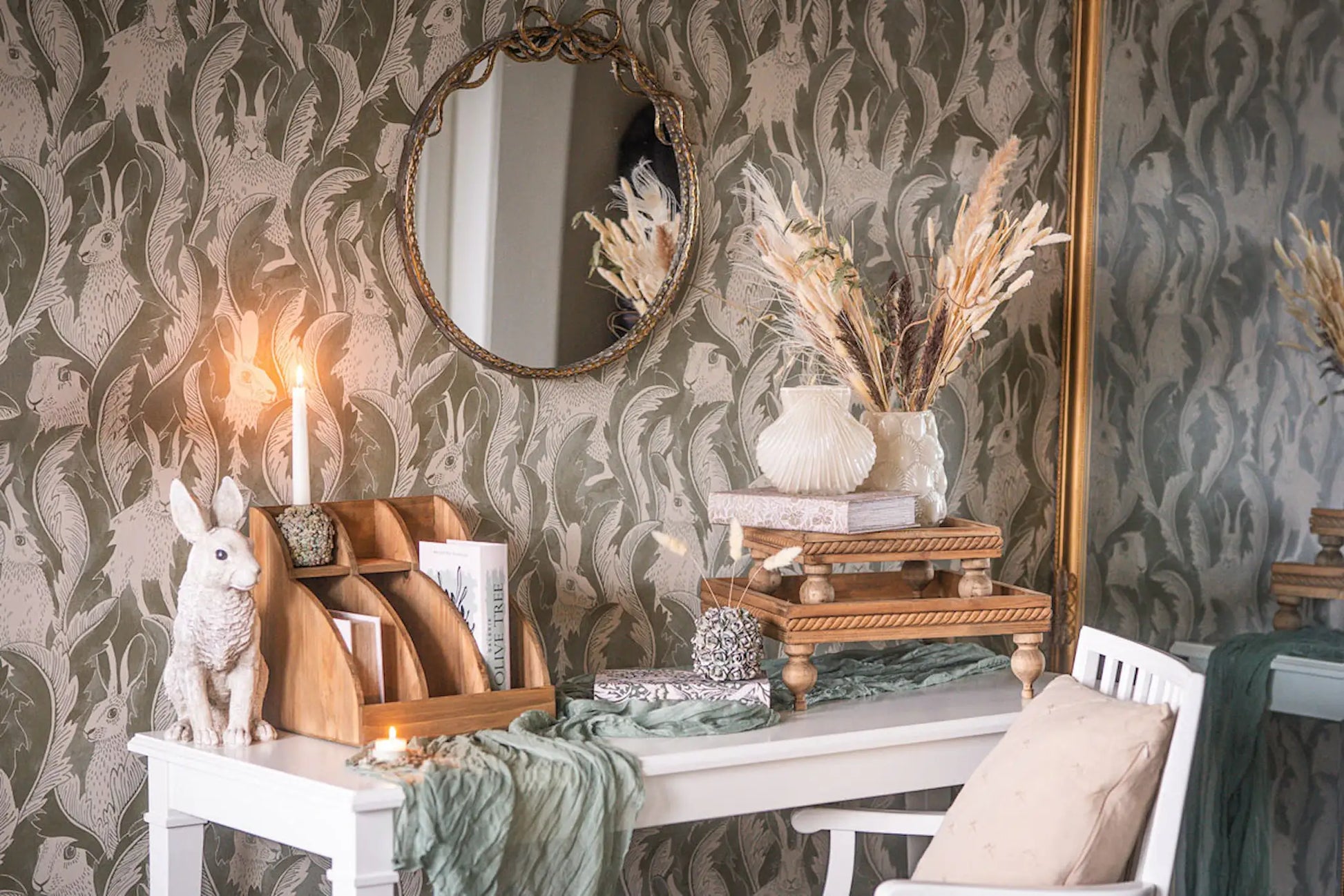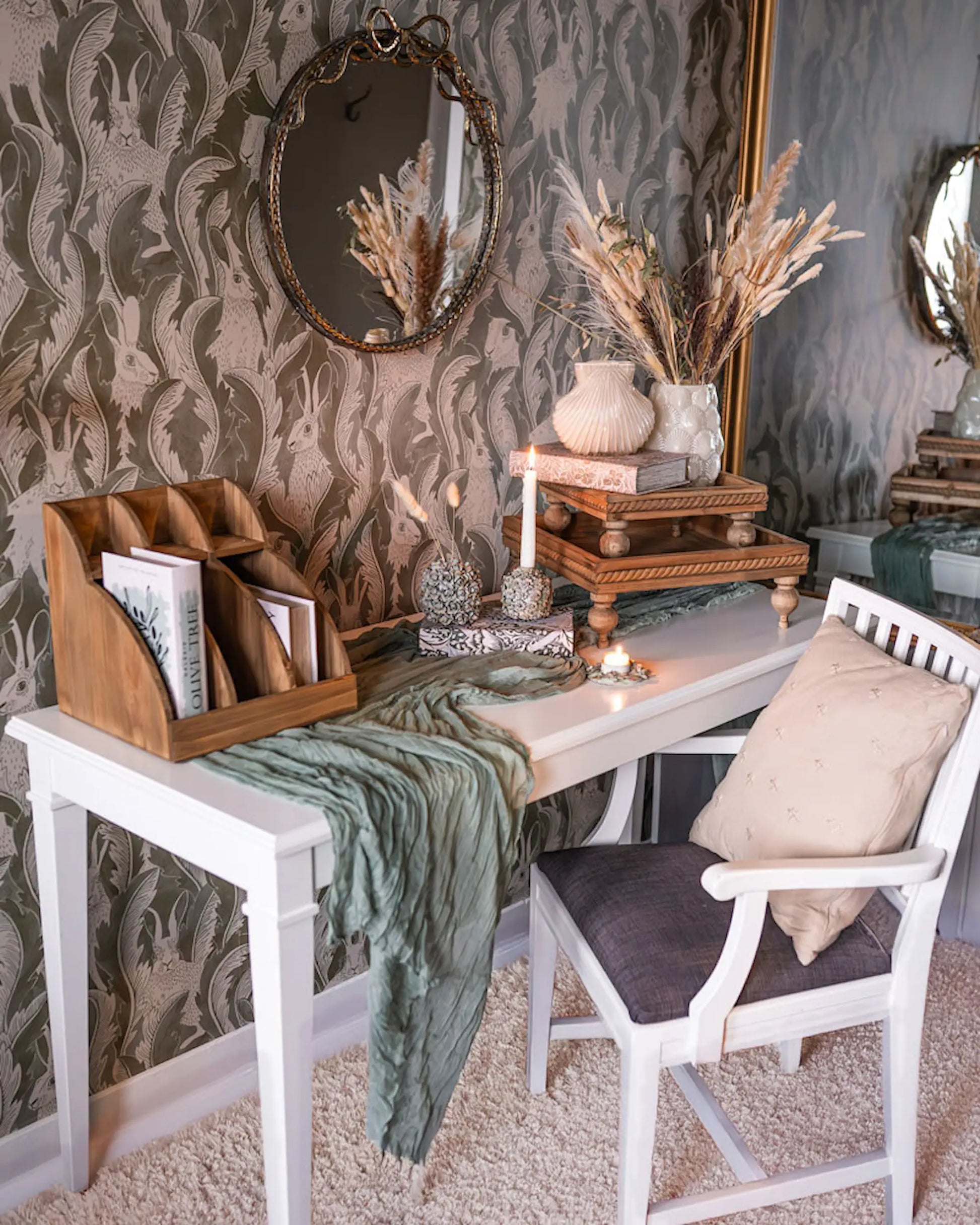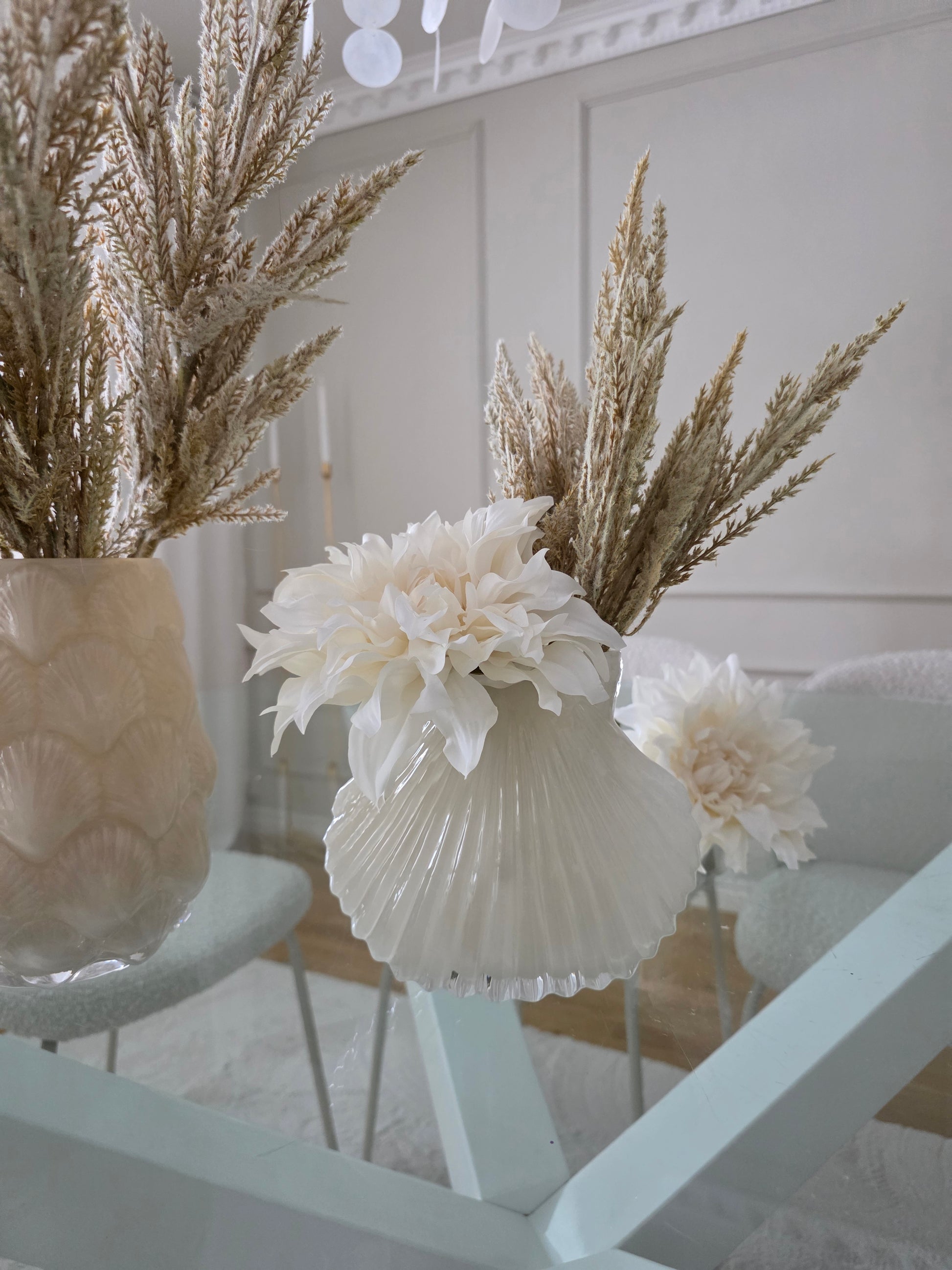 Vacker glasvas i snäckdesign som ger en härlig känsla till snittblommorna.
