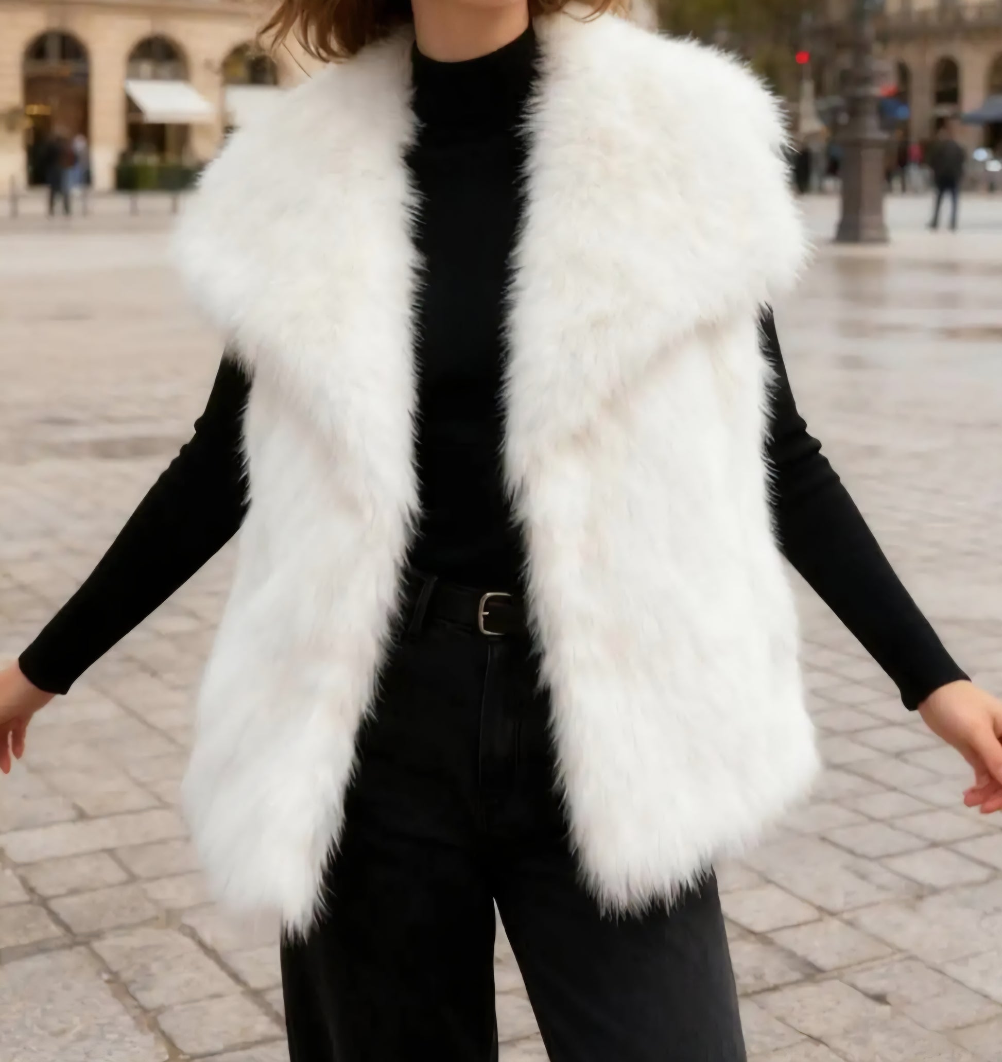 Ärmlös väst i fuskpäls för kvinnor, perfekt för hösten, 100 % polyester