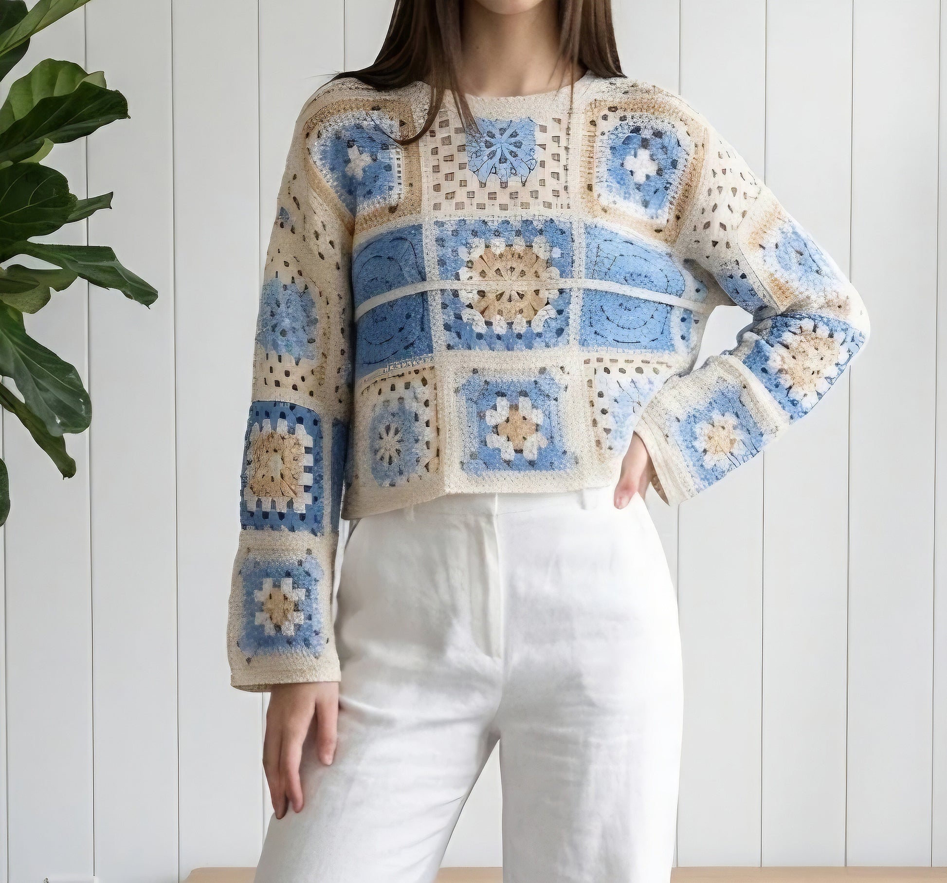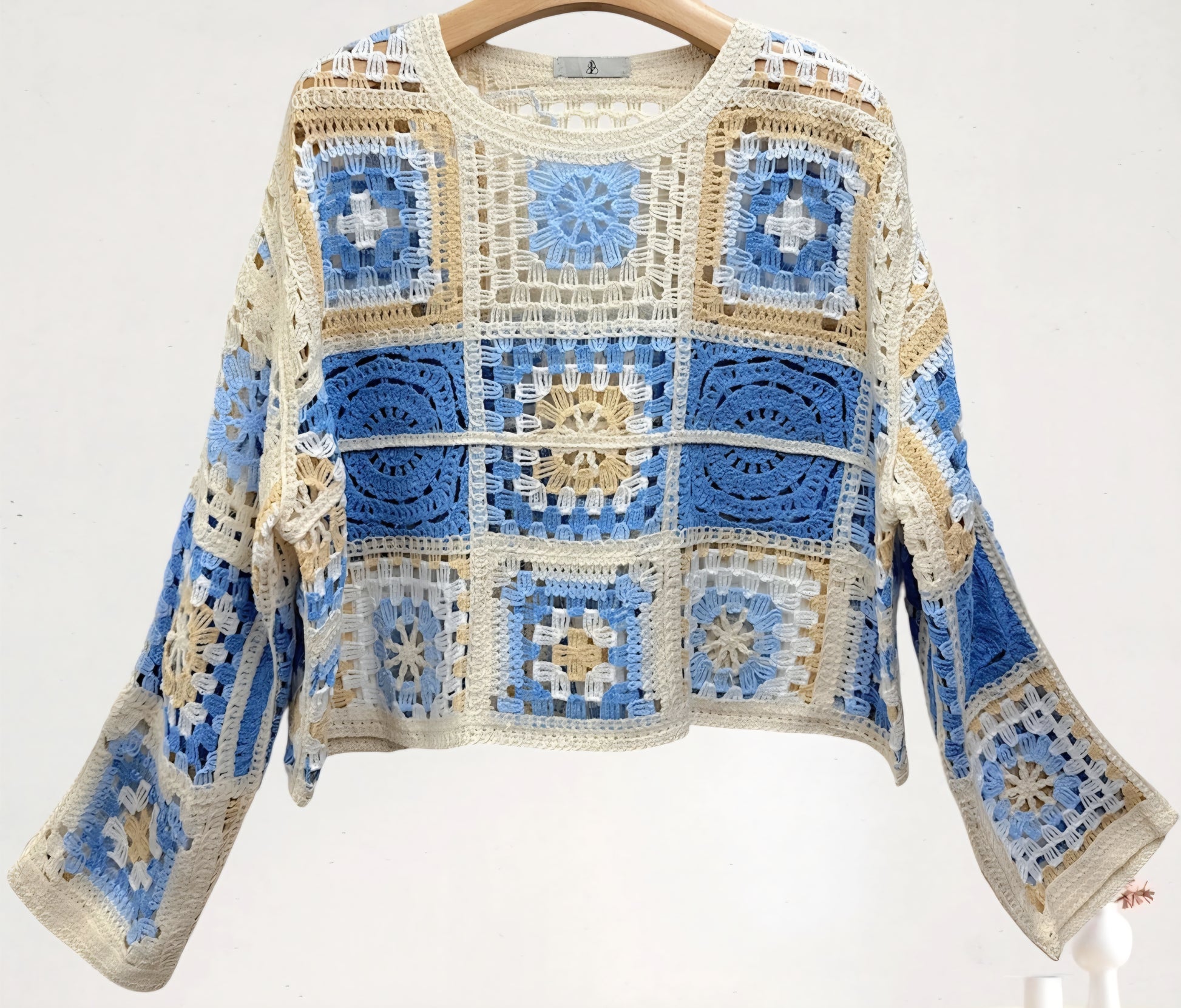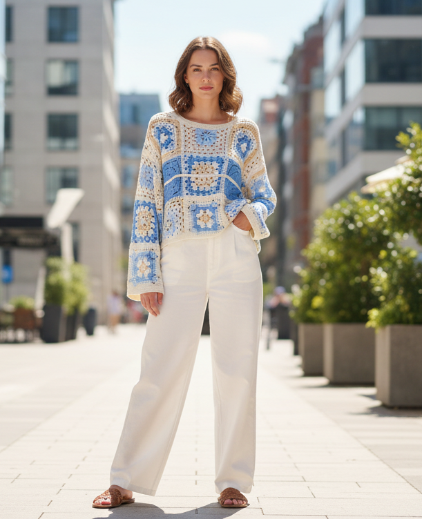 Virkad topp i 100 % bomull, perfekt för vår/sommar, perfekt för en fräsch och färgglad look.
