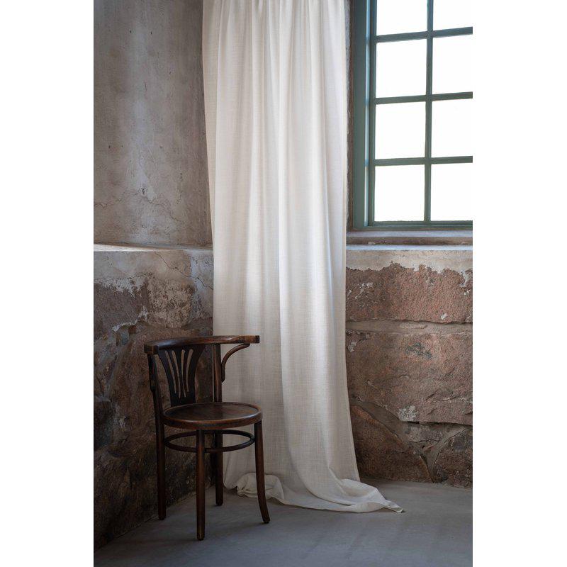 En elegant gardin med ett exklusivt utseende, tillverkad av ett tyg som ger ett tungt och vackert fall. Materialets mjuka tyngd skapar ett lyxigt och flytande uttryck som ramar in fönstret på ett stilfullt sätt.