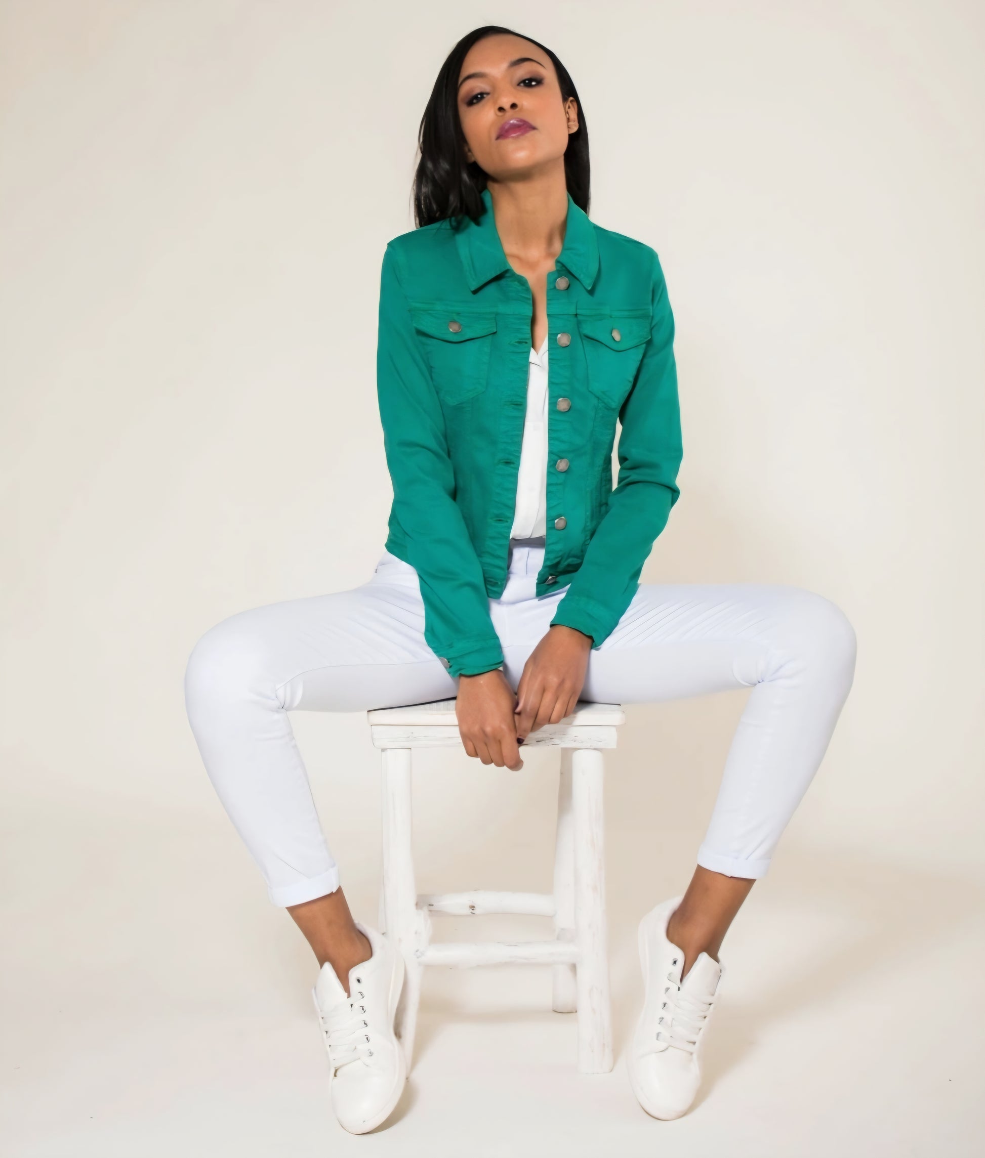 Klassisk stretch jeansjacka Vit