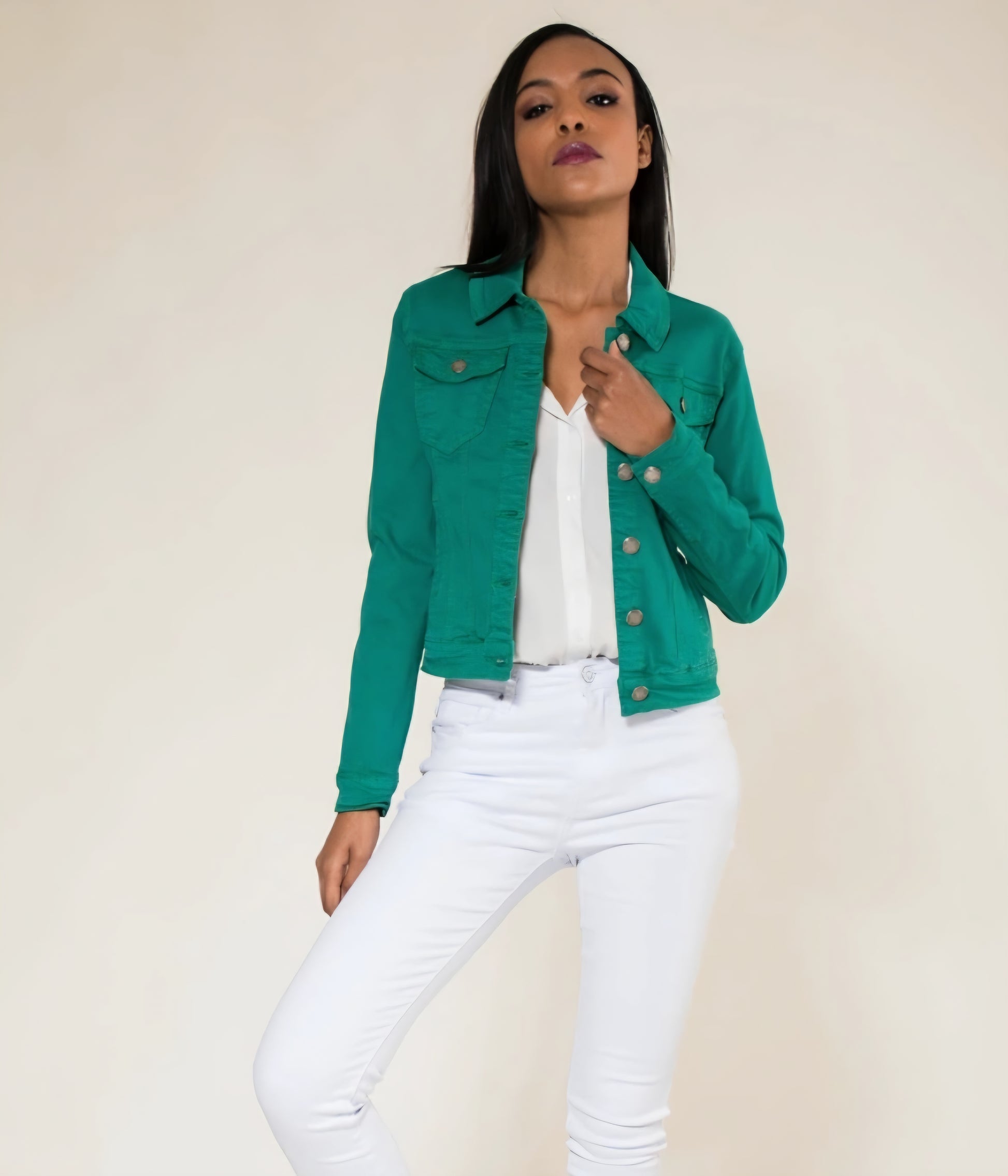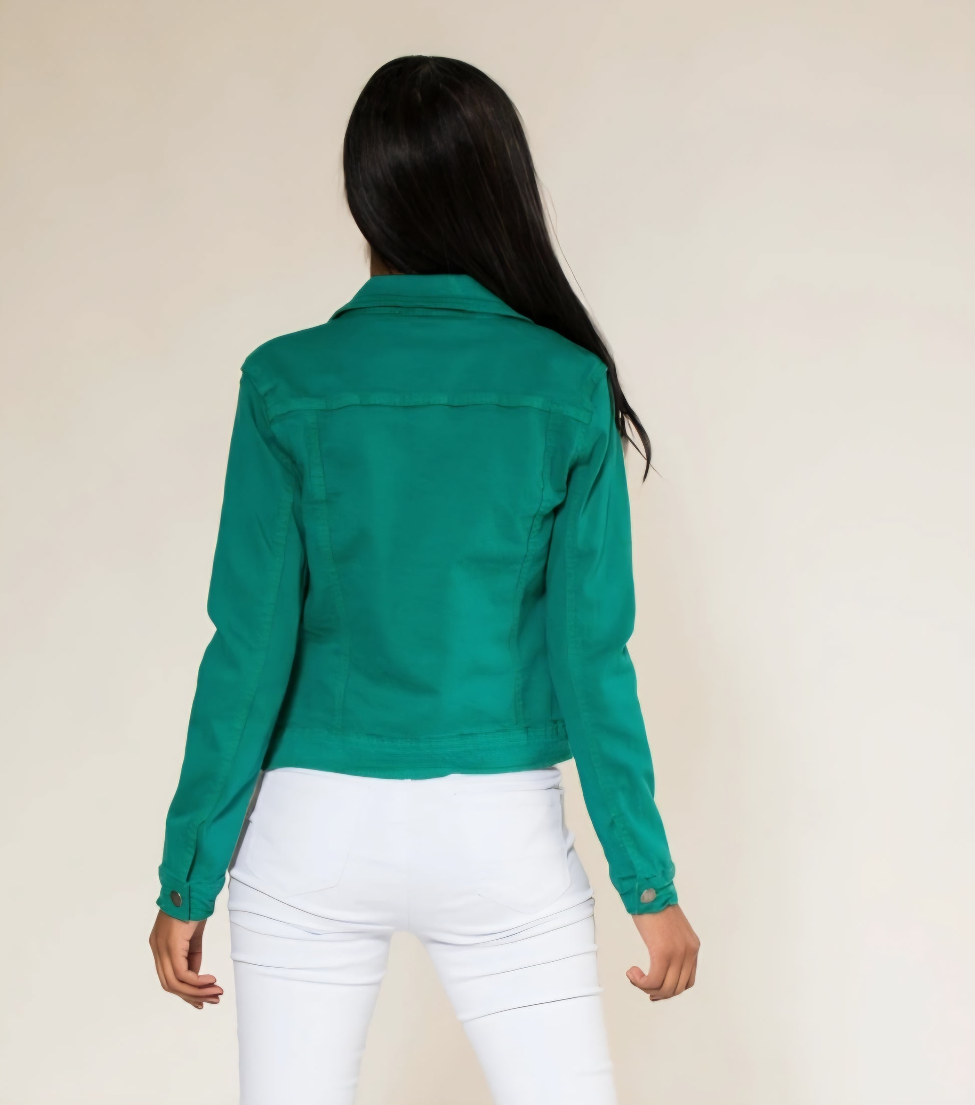 Klassisk stretch jeansjacka Gräsgrön