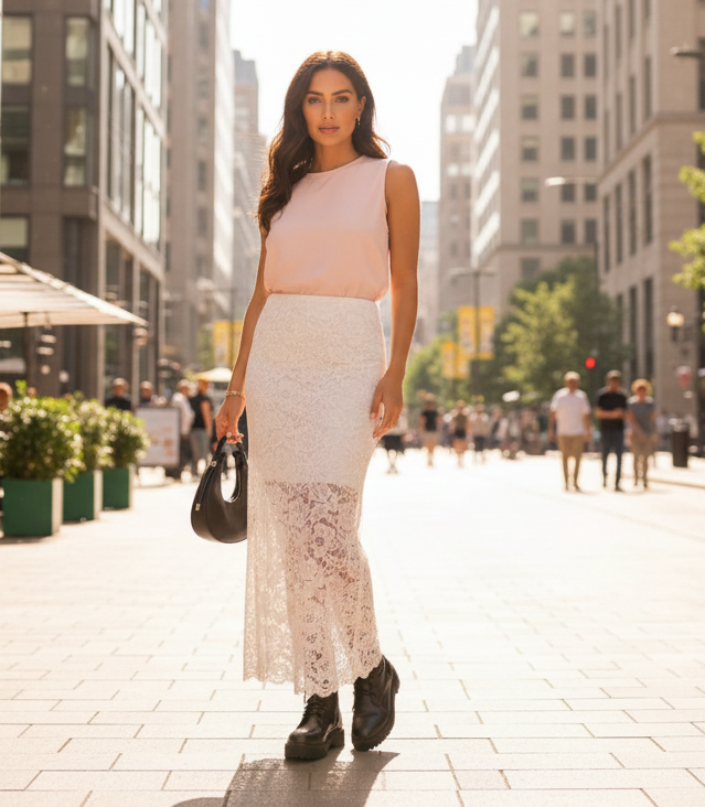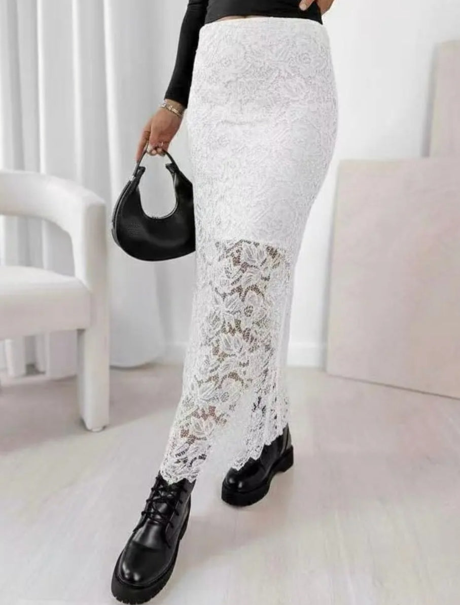 Lång spetskjol Vit