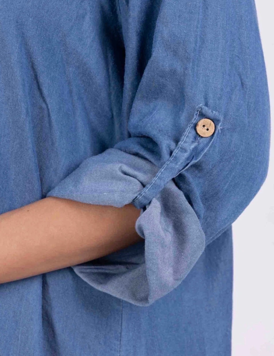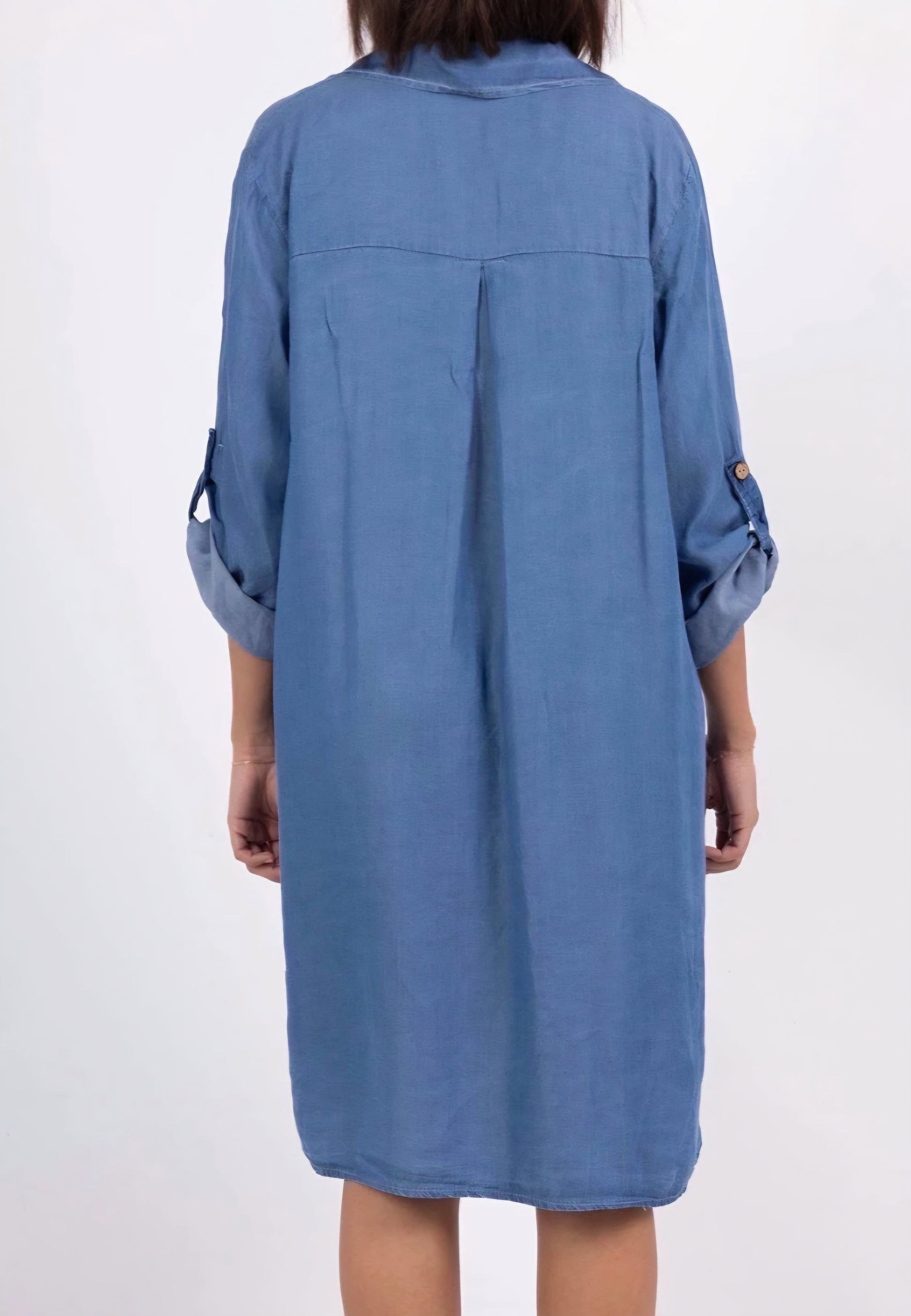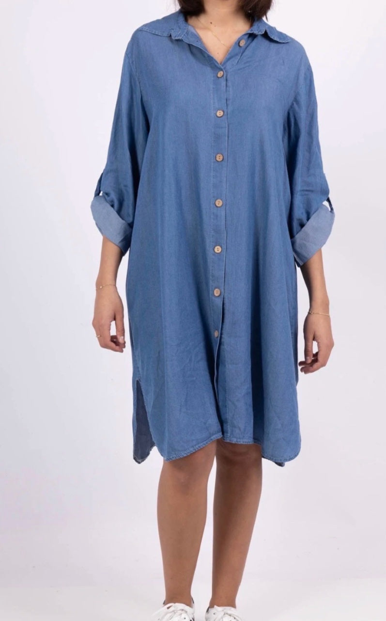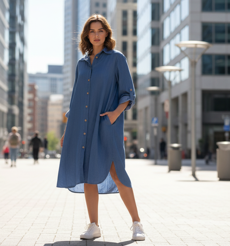 Lätt denimtunika, 100 % lyocell, perfekt för våren. Tillverkad i Italien, perfekt för en avslappnad stil.