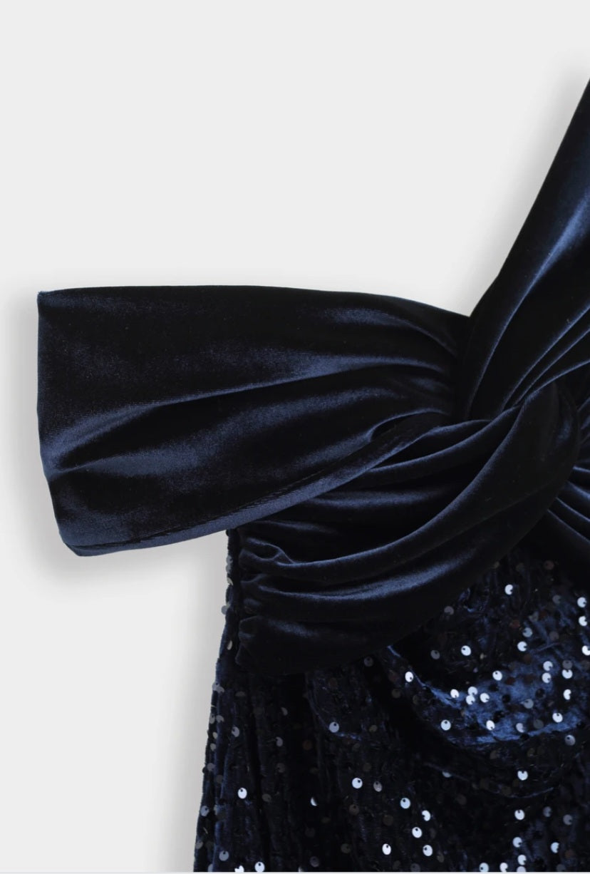 Asymmetrisk paljettklänning i maxi Marinblå