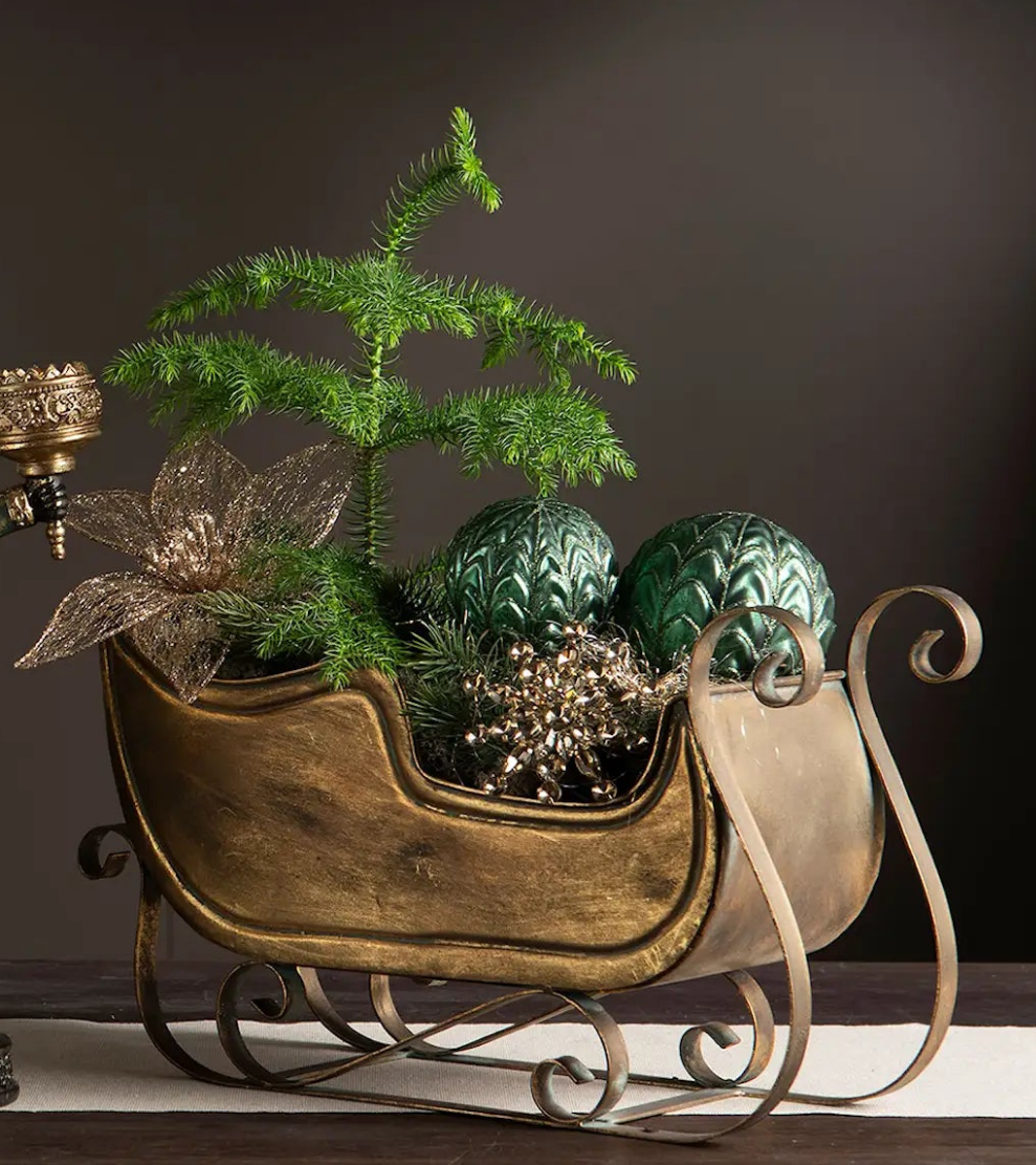 Denna släde i metall är en fin dekoration som den är eller fylld med mossa, grenar och julpynt för den rätta julkänslan