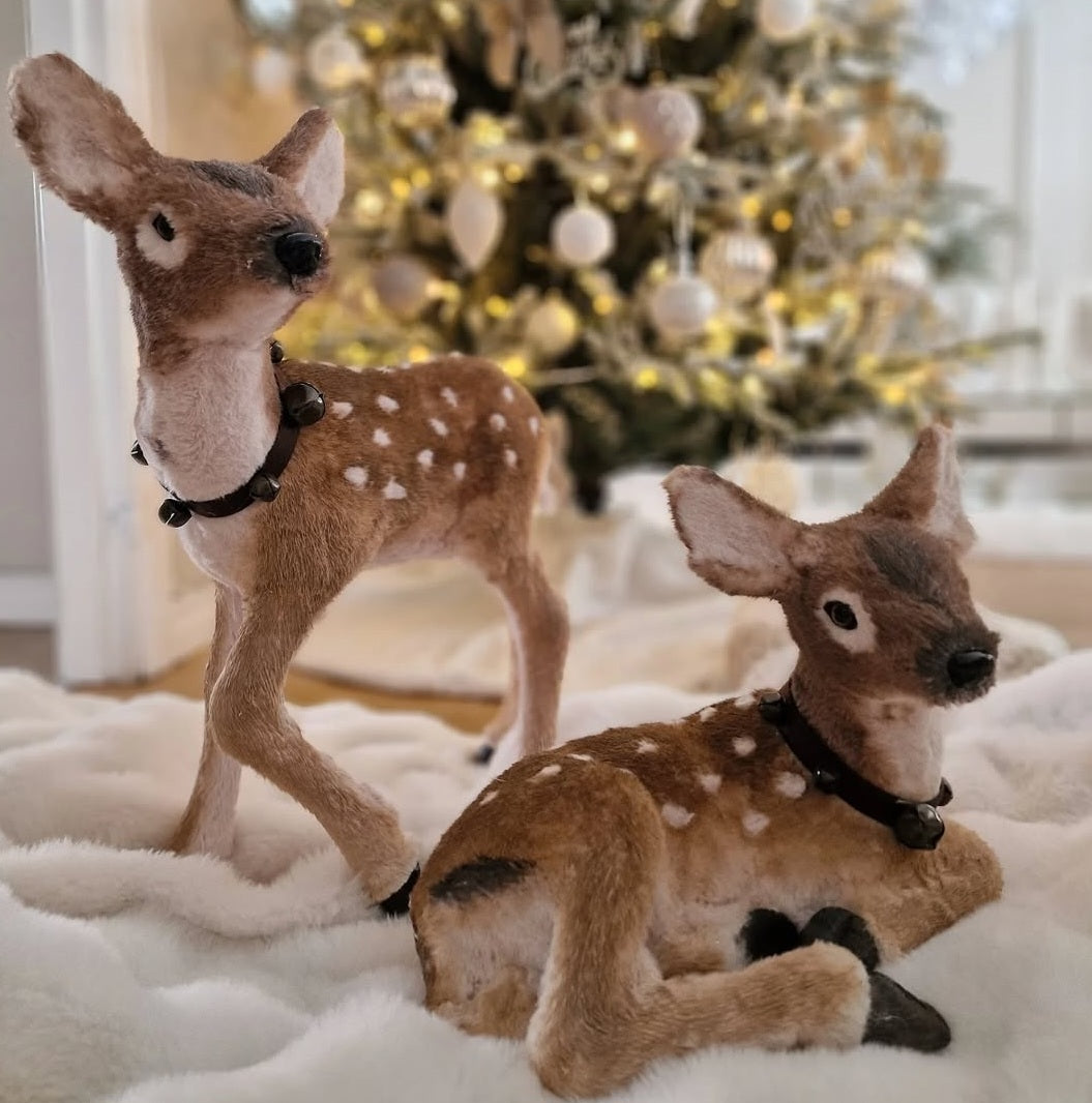 Låt naturen inspirera dig i din inredning och få in skogen med dessa dovhjortskalvar. Tillverkade av frigolit och textil.