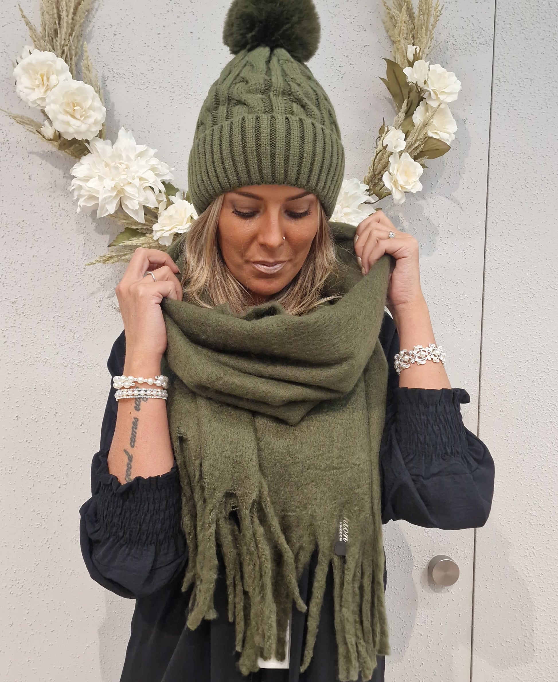 Lång enkel halsduk för kvinnor med fransar. Svep in dig i mjukhet med denna långa enkla halsduk för kvinnor, med fransar. Den mäter 70 cm x 200 cm.