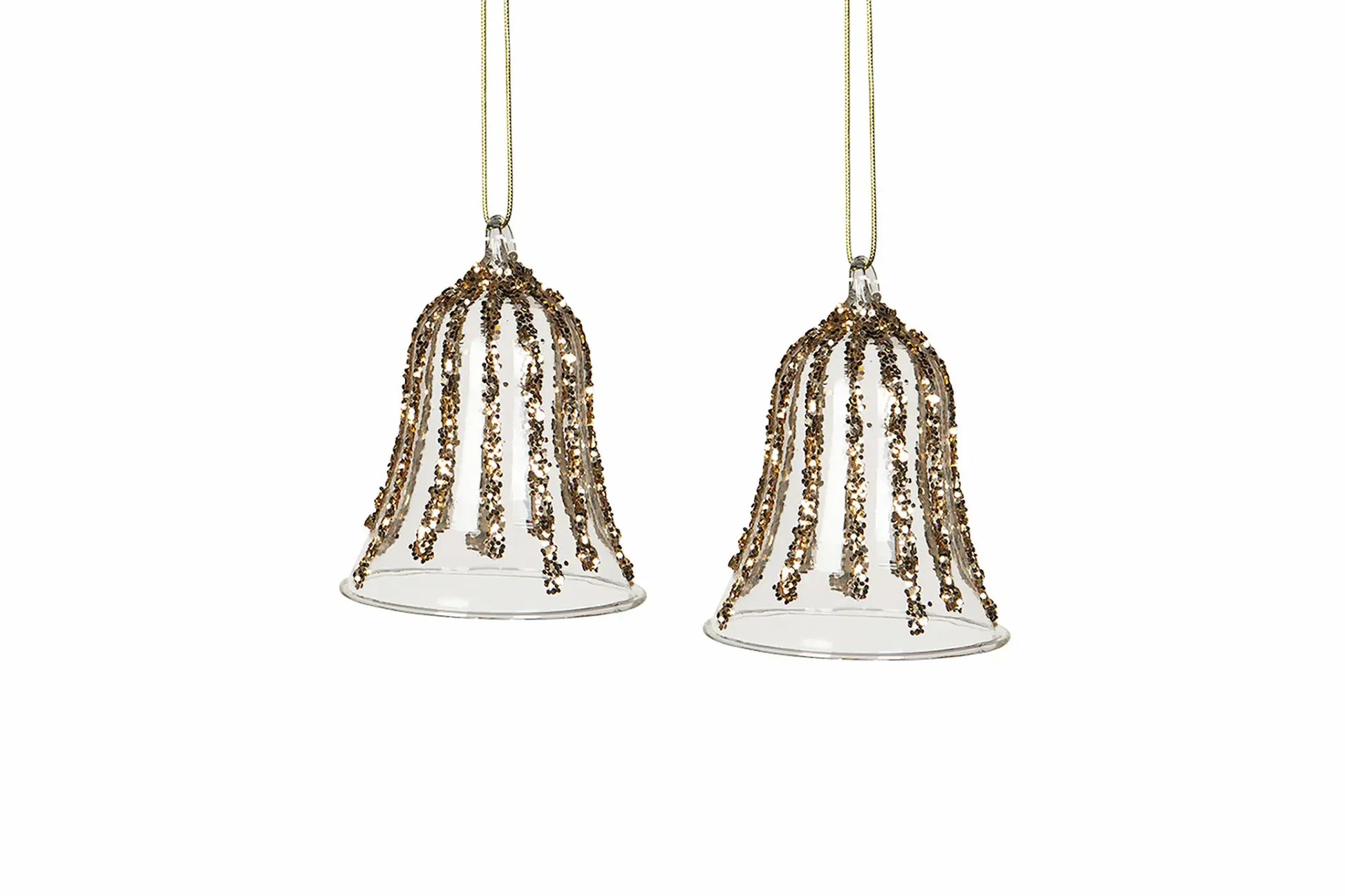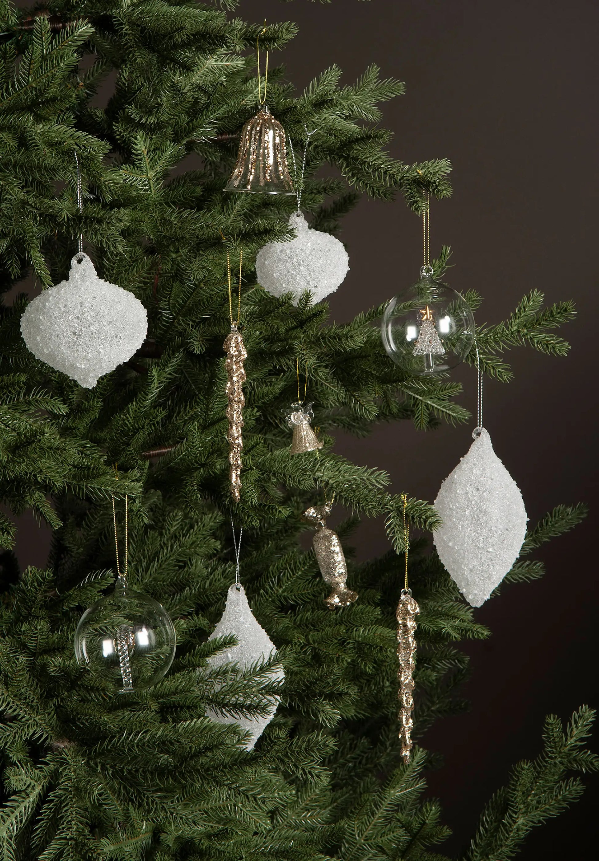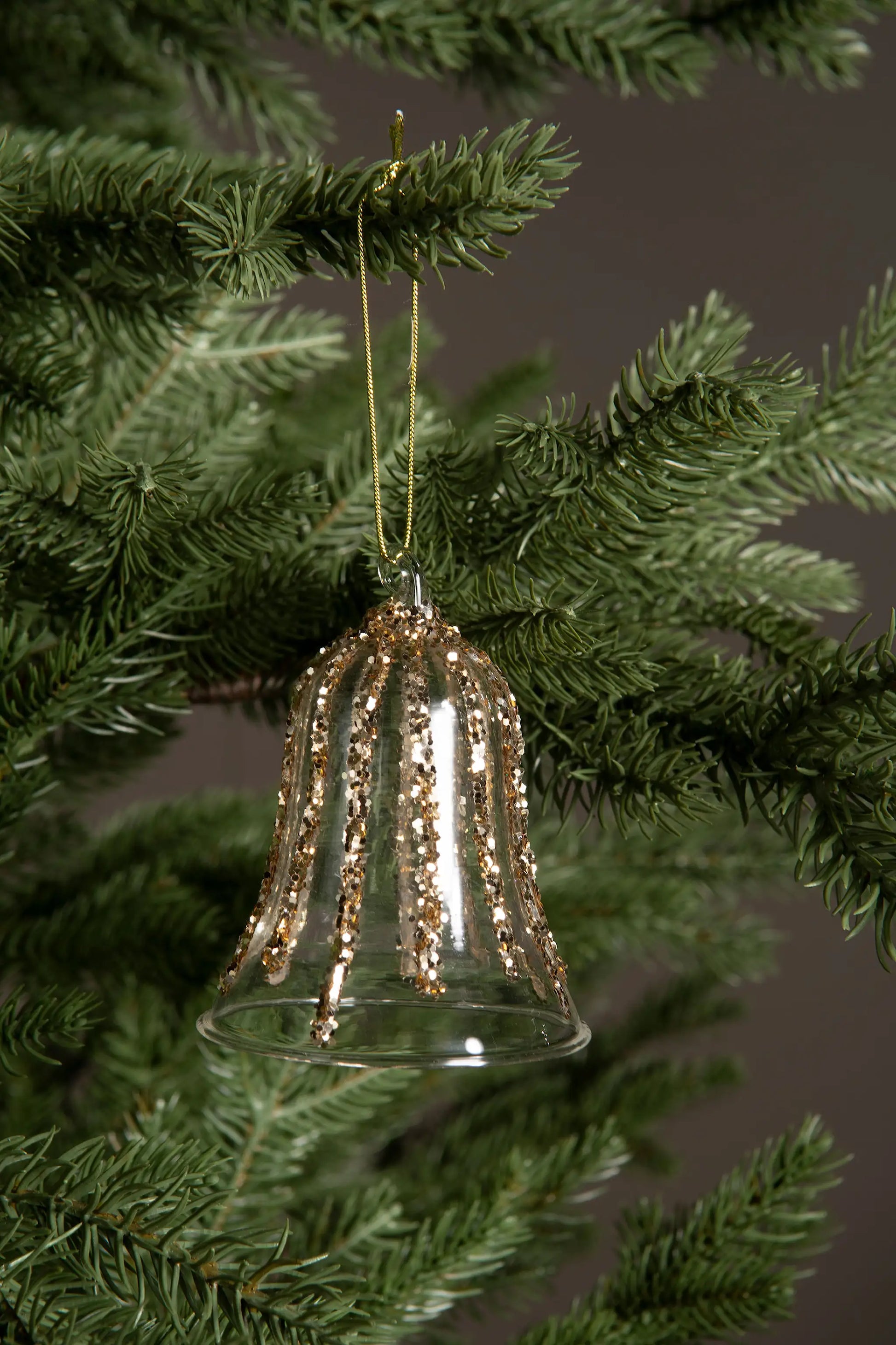 Julgranen blir extra fin med en transparent klocka med glitterdetaljer. Tillverkad av glas.