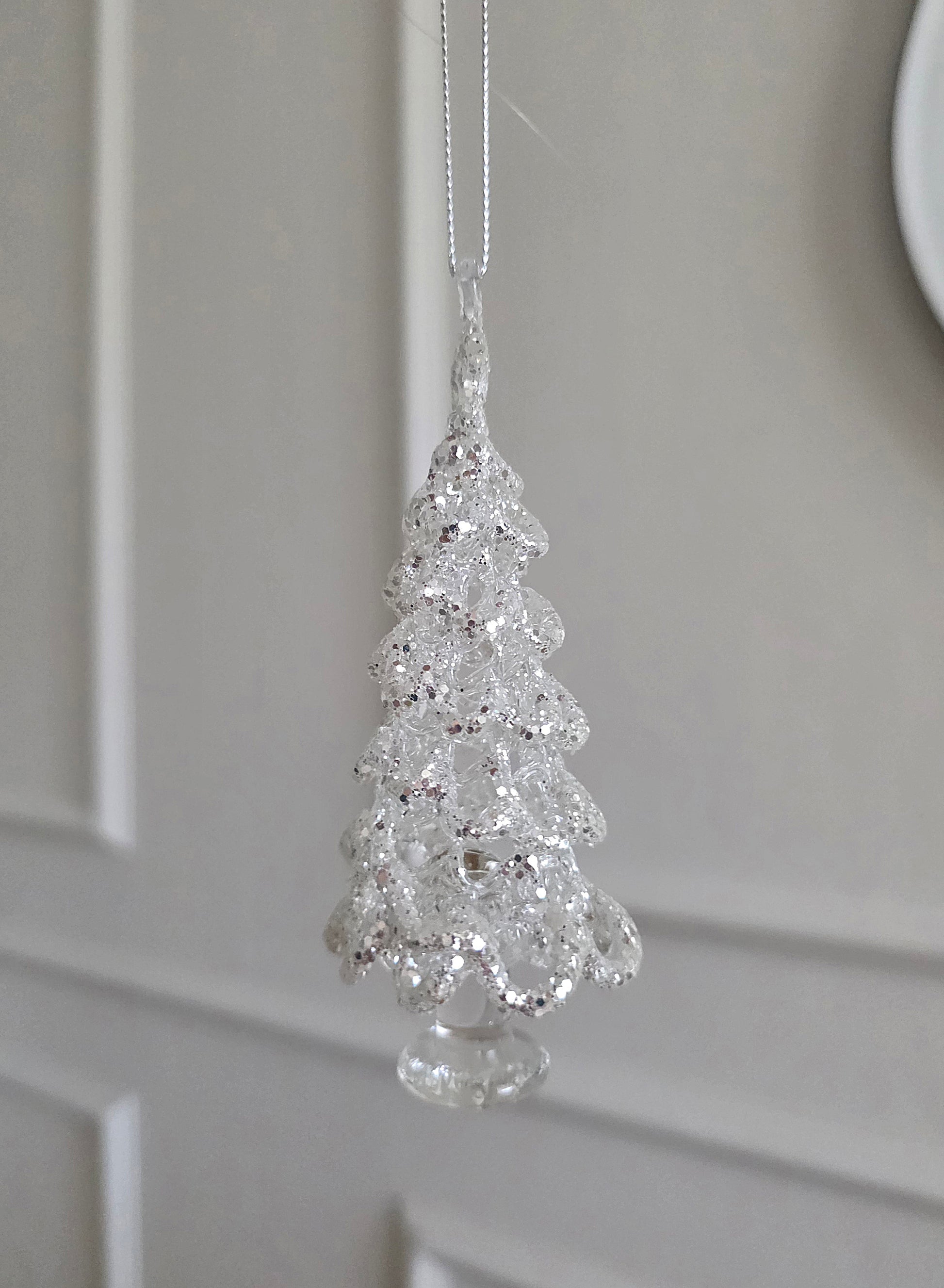 Glittrande julgranar som blir en underbar dekoration att hänga i julgranen. Tillverkade av glas.
