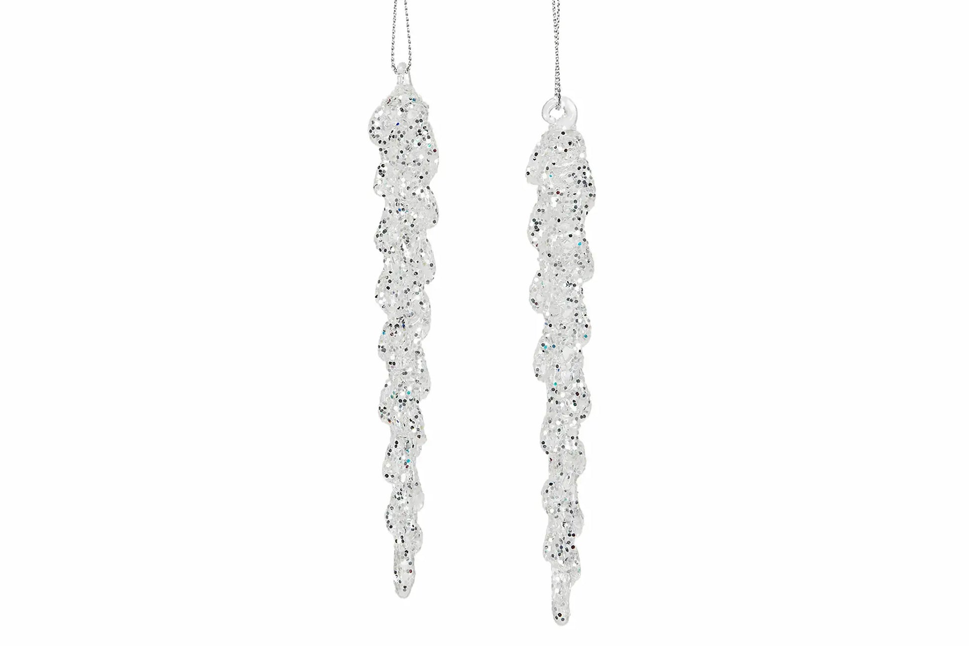 Glittrig istapp som blir en underbar dekoration att hänga i julgranen. Tillverkad av glas.