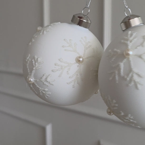Julgranen kommer att se fin ut med en julgranskula med snöflingor. Tillverkad av glas.
