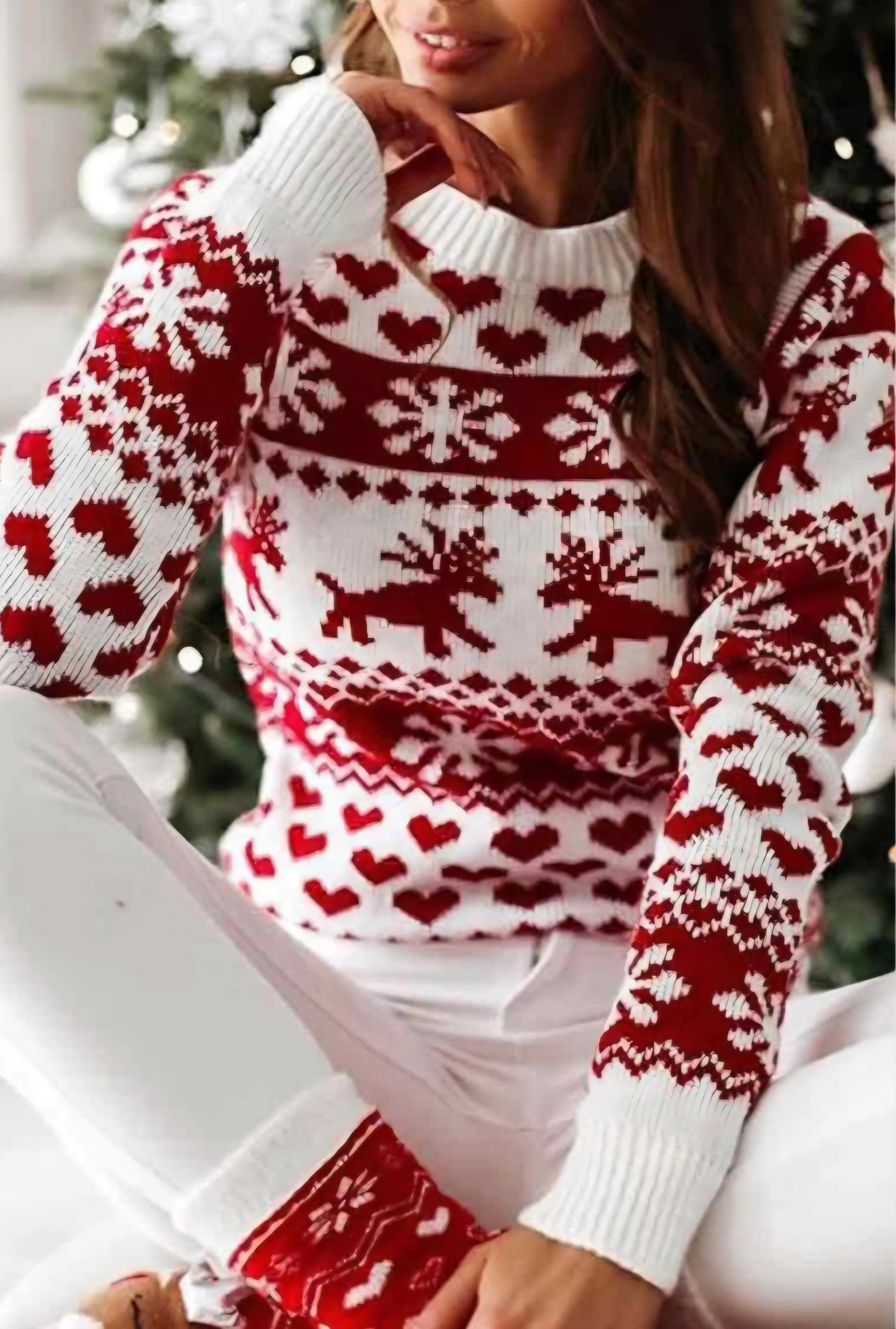 Långärmad jultröja. Stickad topp finns i en storlek som passar alla. Finns i olika färger.