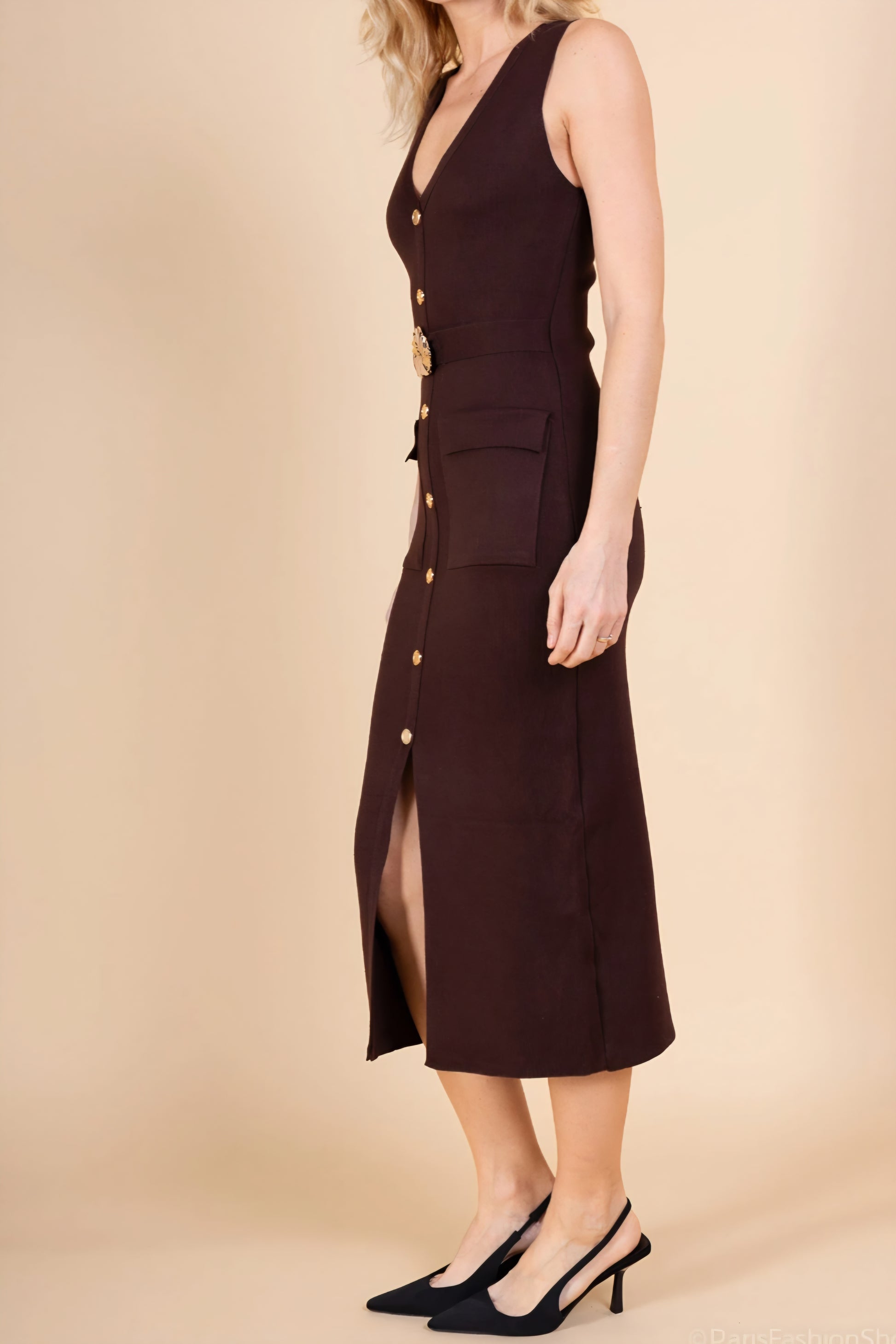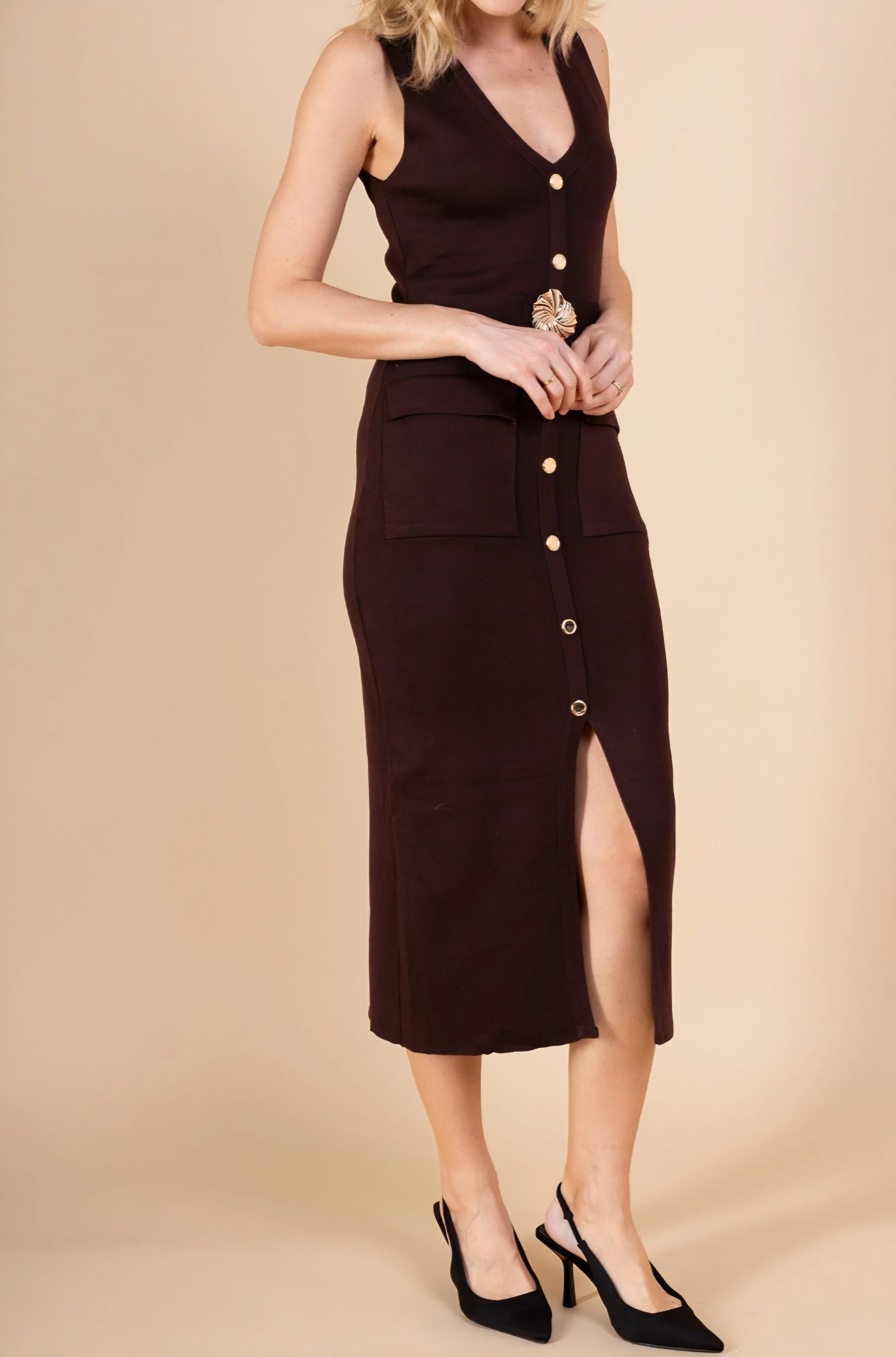 Klänning med knappar Brun