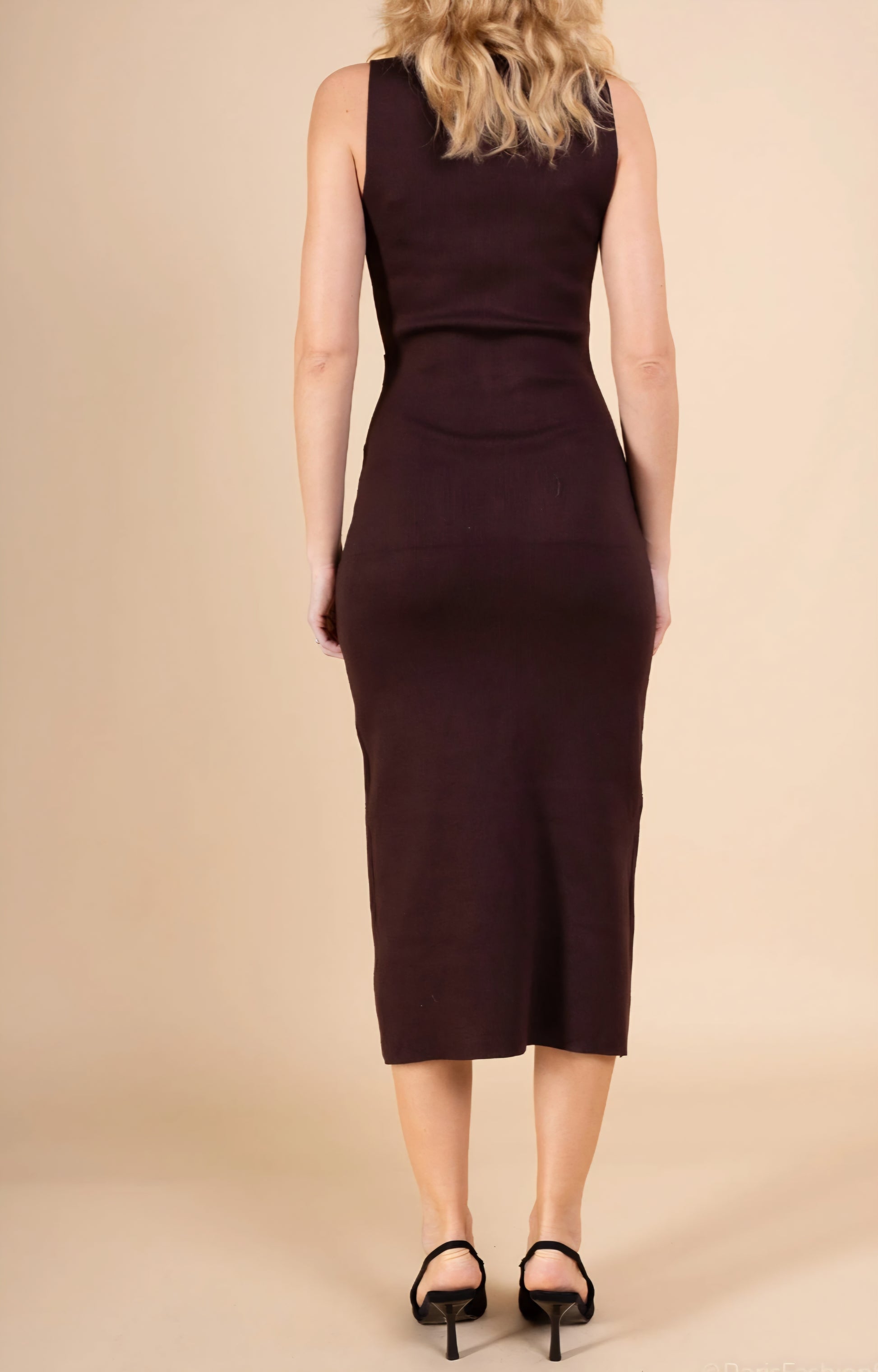 Elegant ärmlös klänning, 68 % viskos, 32 % polyester, med riktiga fickor