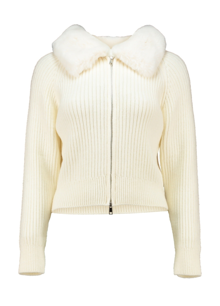 - Kofta med pälskrage Offwhite, Fuskpäls