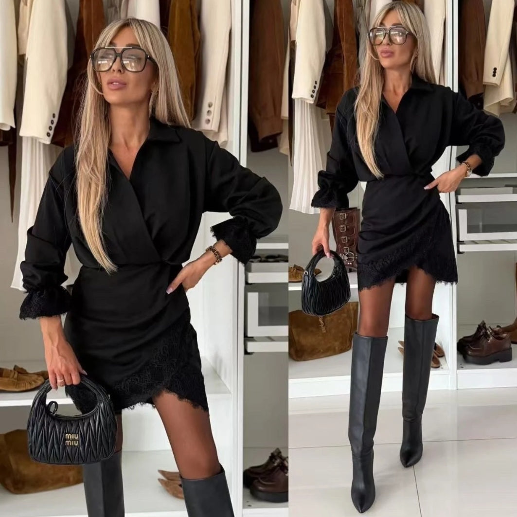 Asymmetrisk omlottklänning – Svarta spetsdetaljer Svart