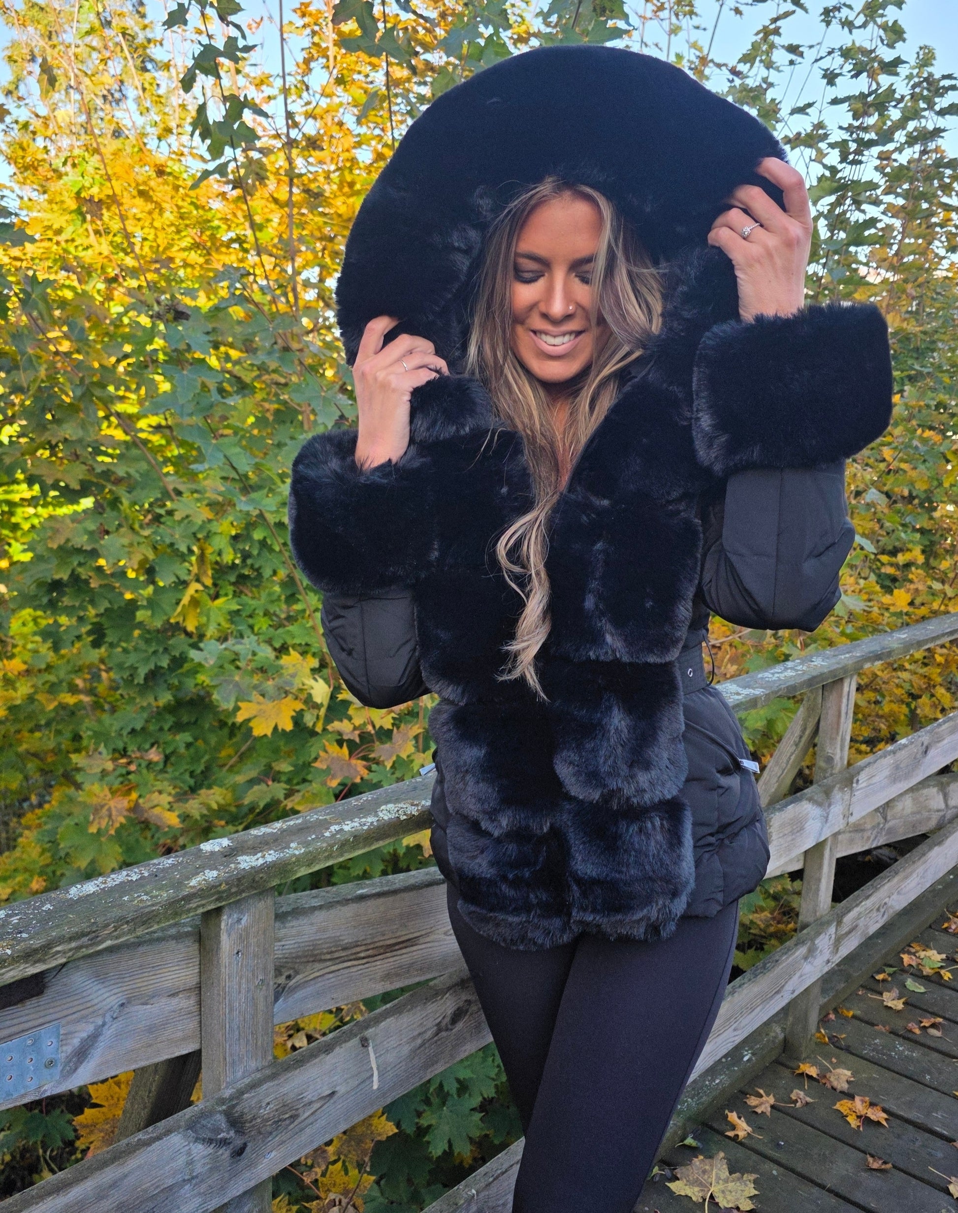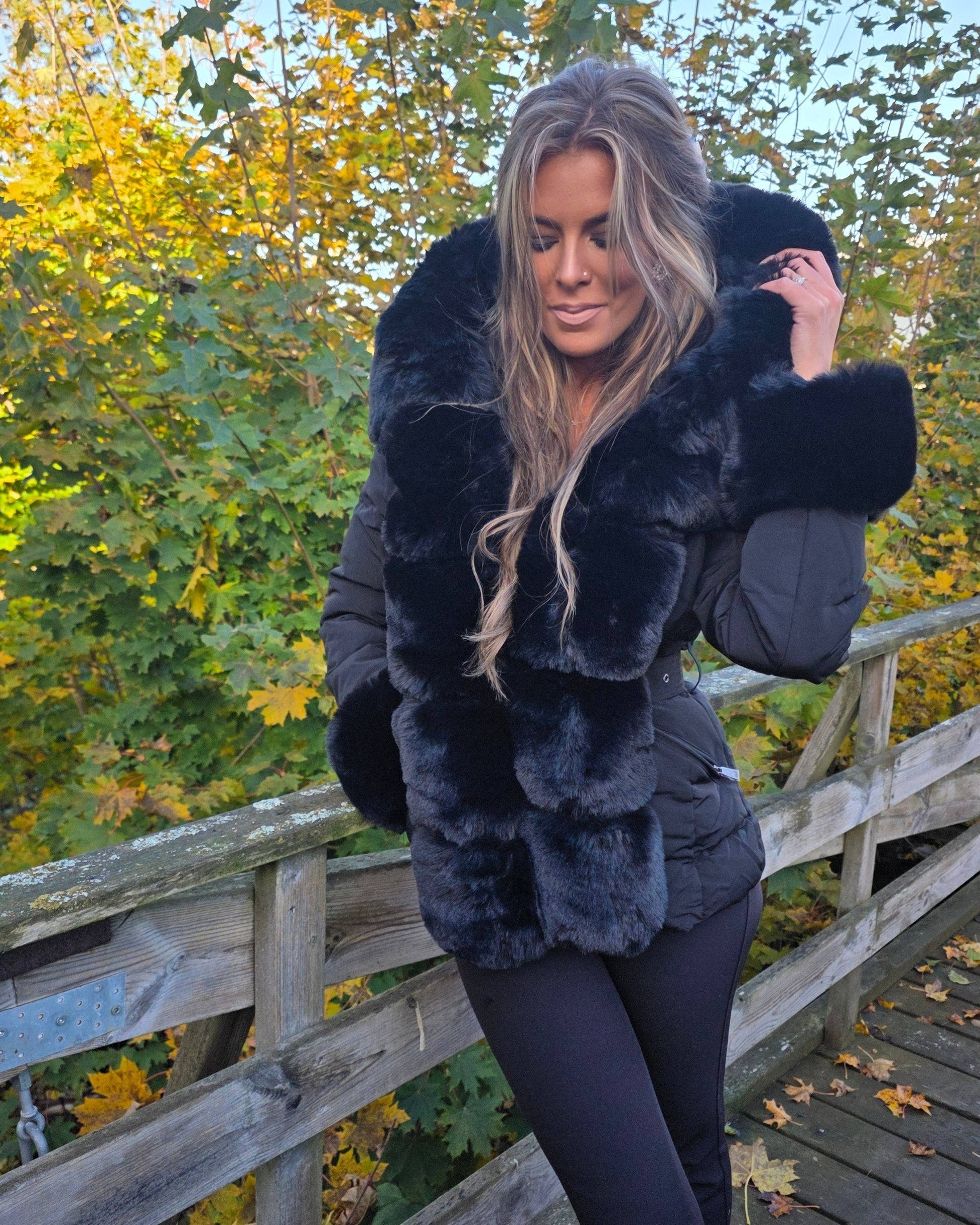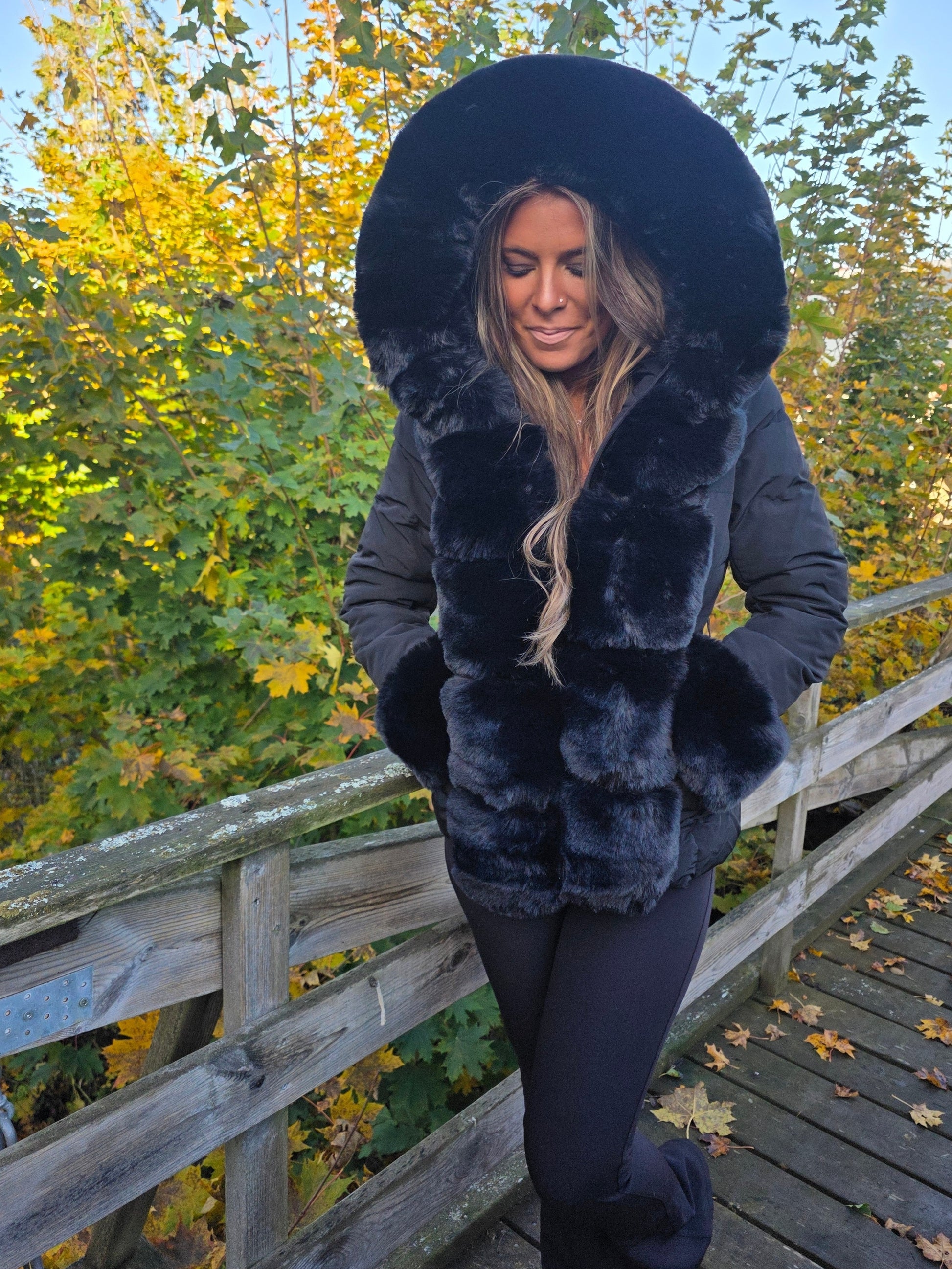 Snygg Dunjacka med fuskpäls, avtagbar päls.