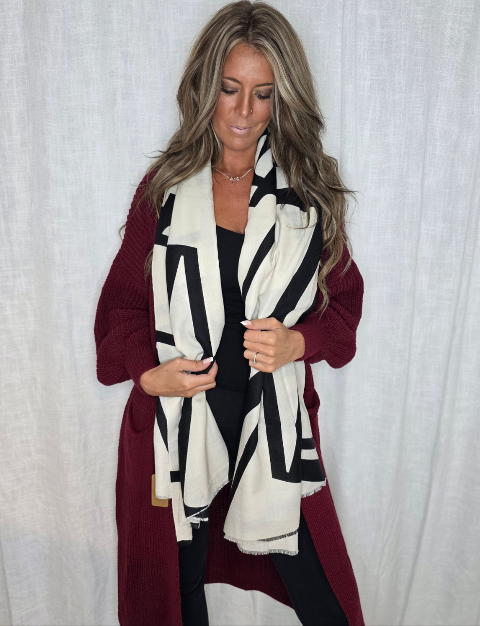 halsduk i ull och viskos, randigt tryck, perfekt för hösten
