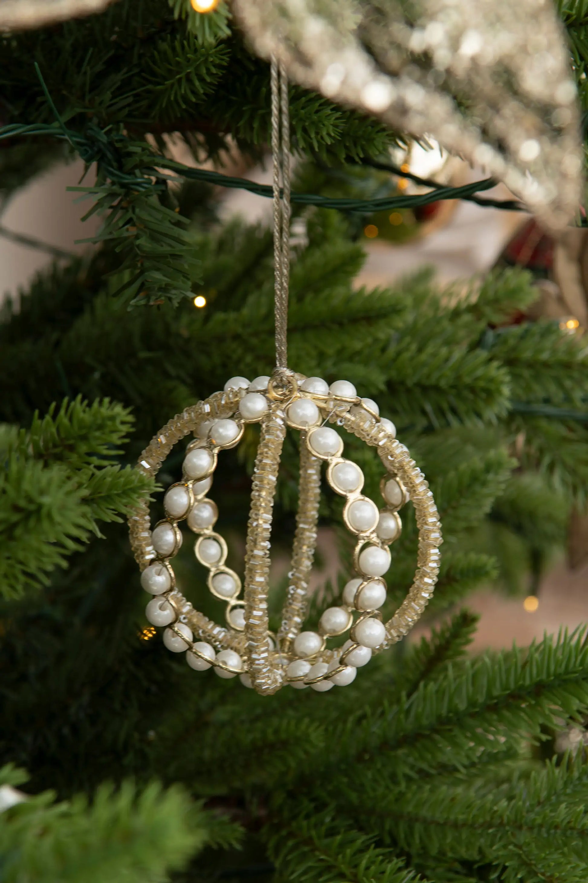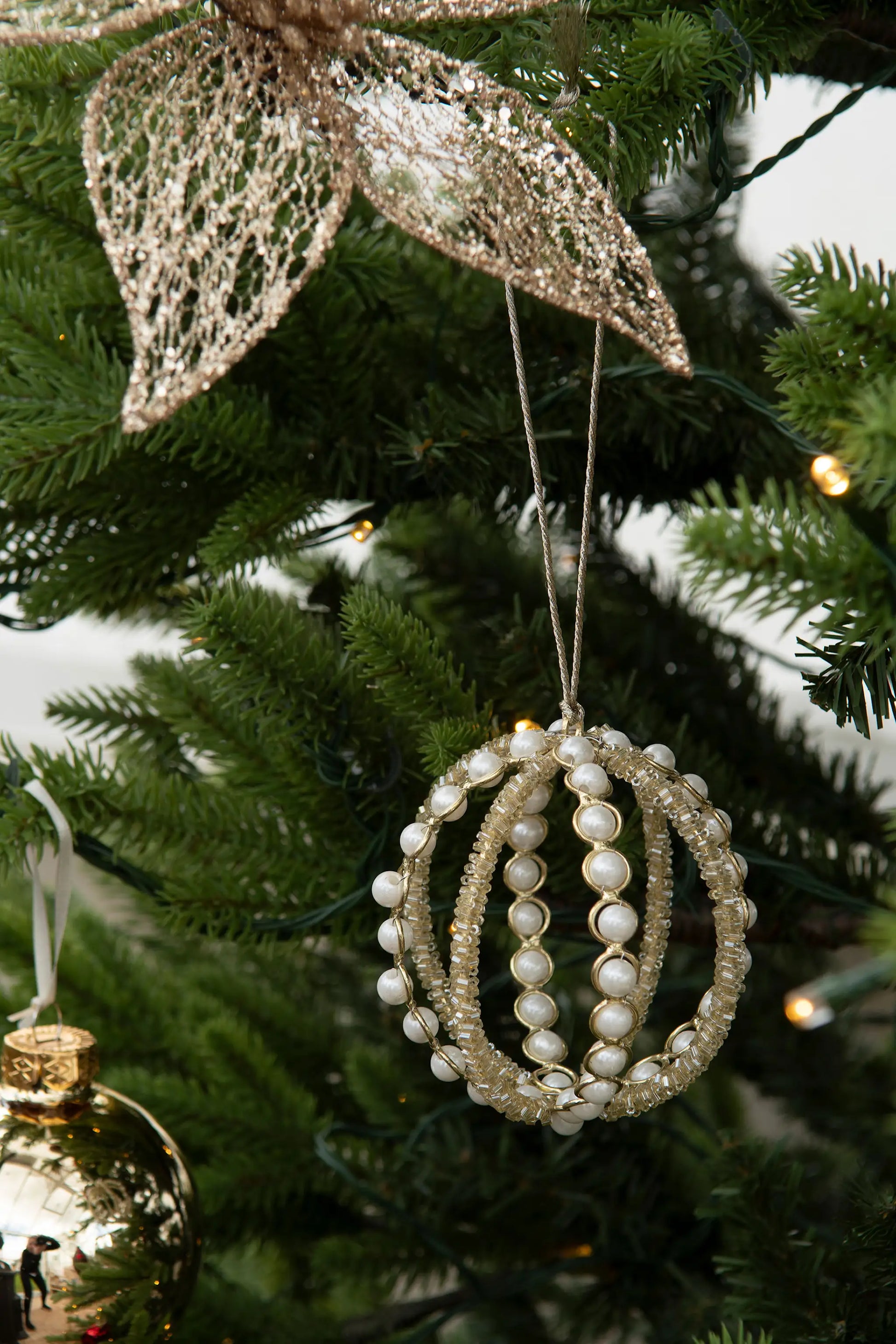 julgranskula Angela är gjord med glittertrådar och pärlor och kommer att se fin ut i julgranen. Tillverkad av metall.