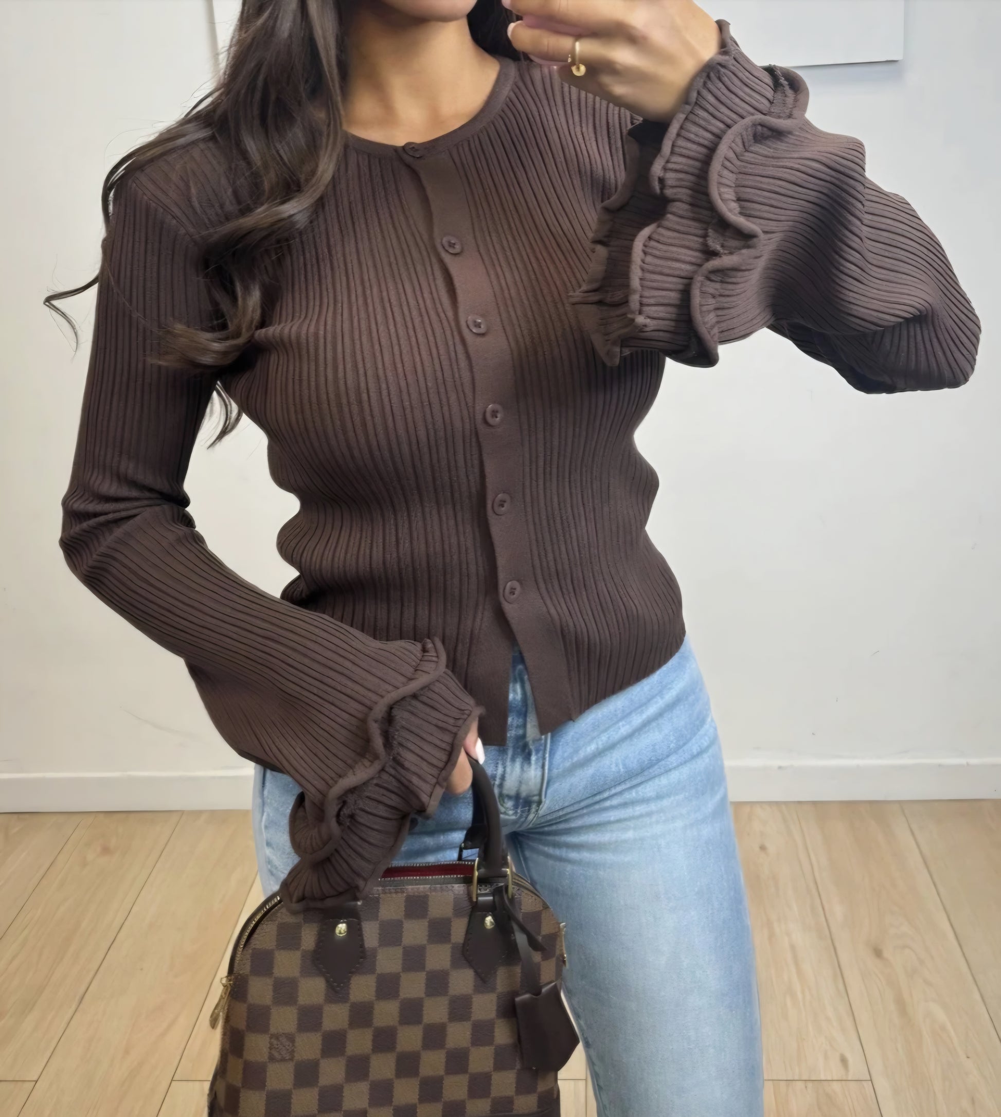 Knäppt kofta med utsvängda ärmar, 55 cm lång