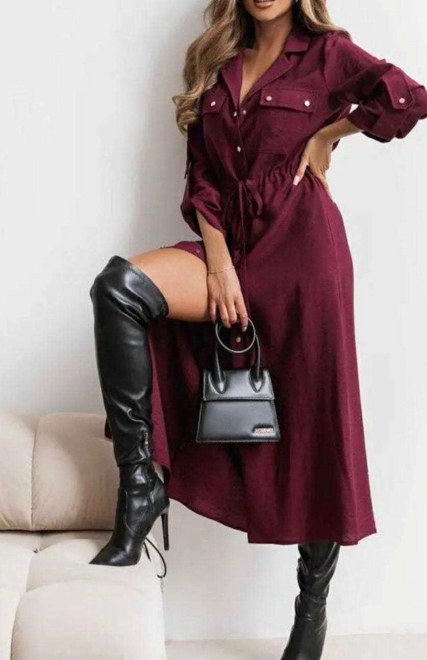 Lång skjortklänning. Klänningen finns i 3 storlekar: S, M, L.